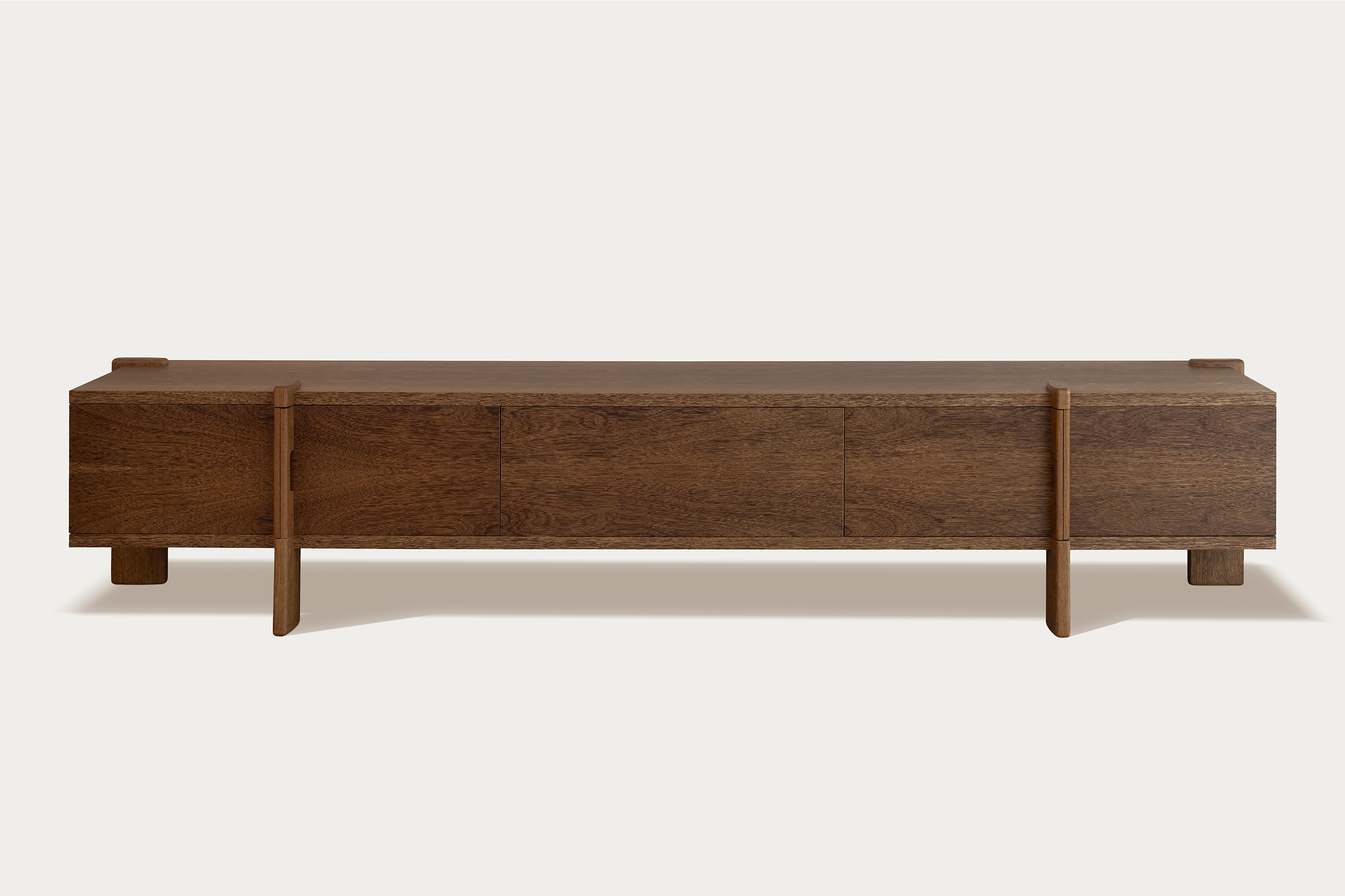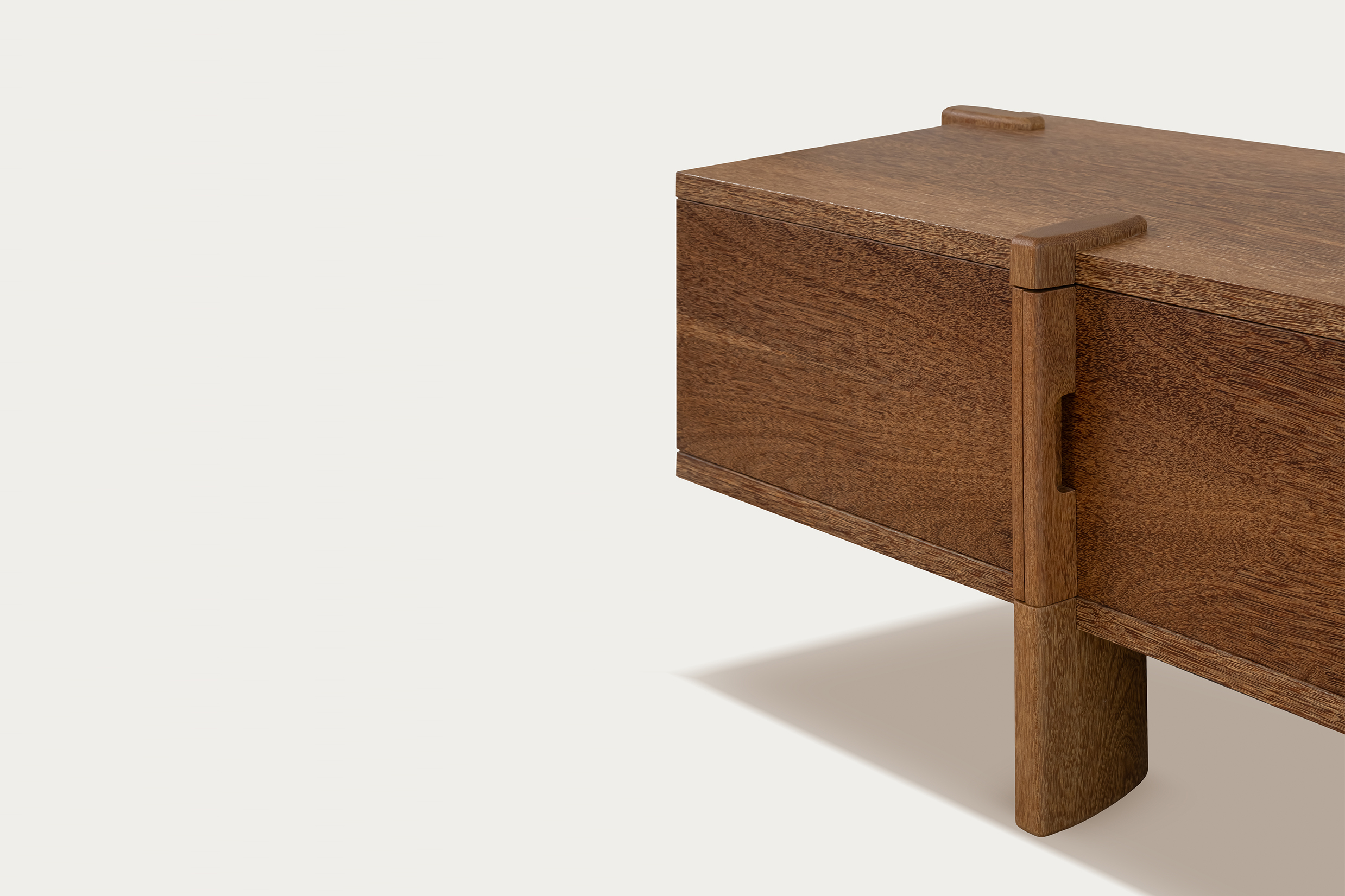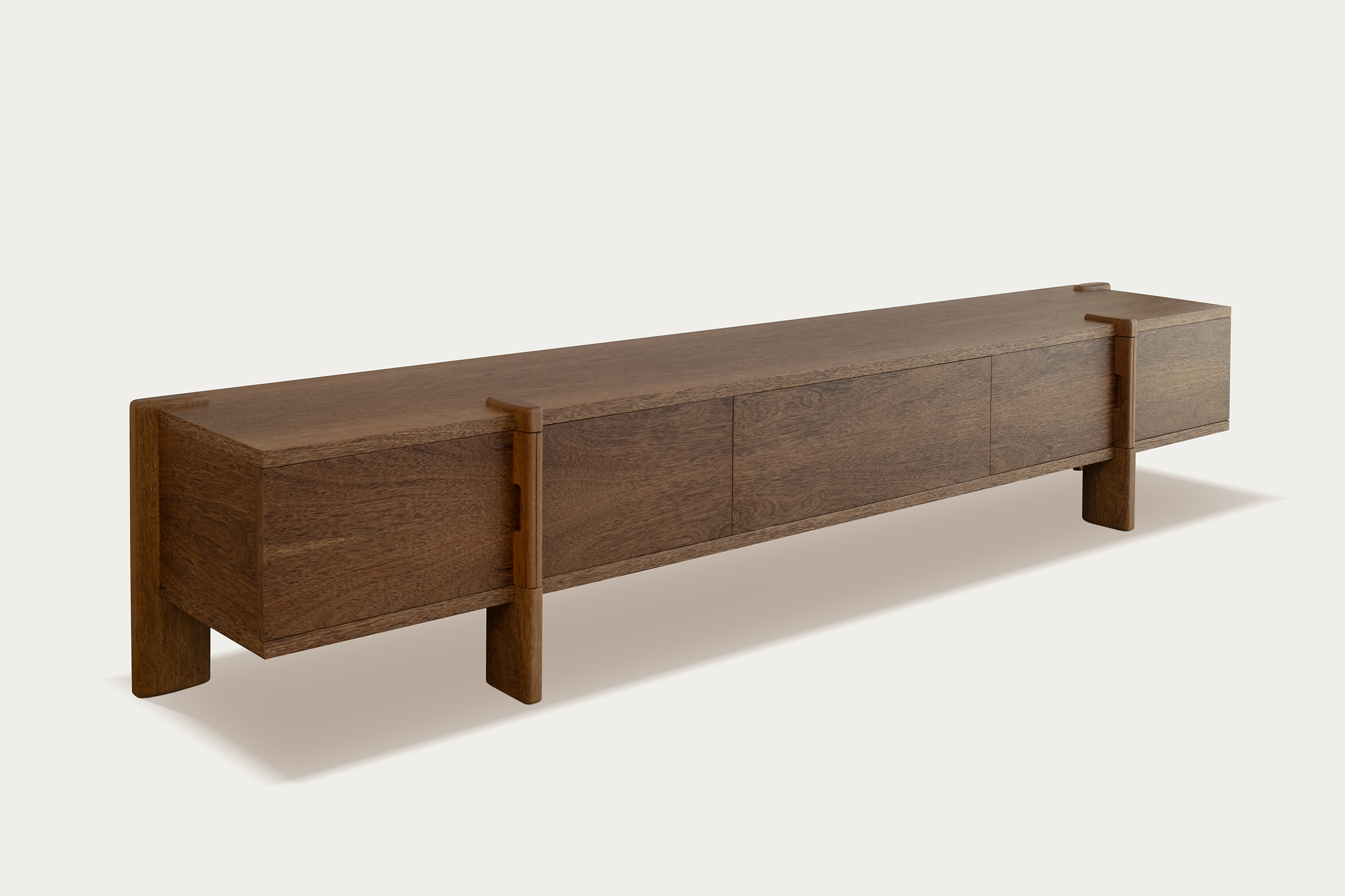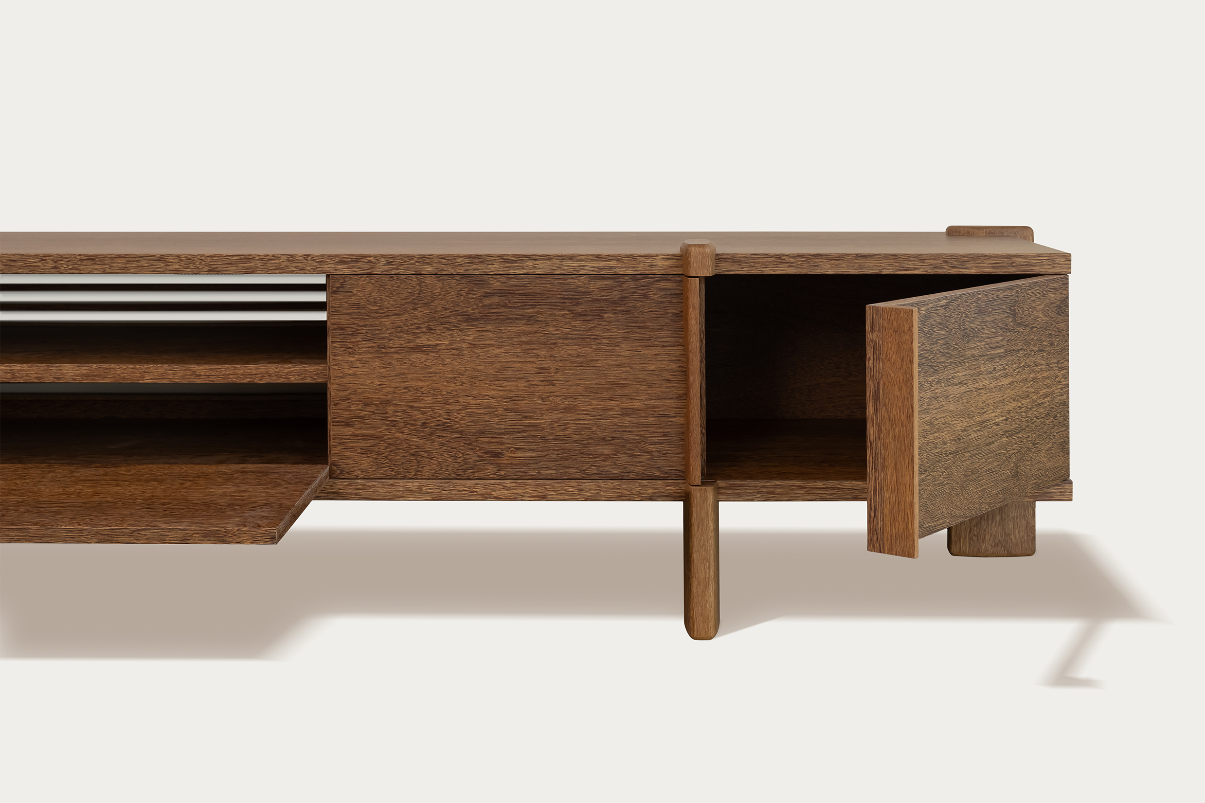 Aparador produzido em Sucupira lavada, nicho central possui ventilação e pode ser produzido na opção com ou sem porta.