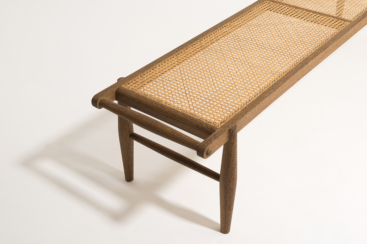 Banco Dado é produzido em madeira maciça Sucupira ou Freijó nas opções natural ou lavada, seu assento pode ser feito em palha natural ou estofado. Resgata a forma tradicional de encaixe e construção da mercenaria milenar.