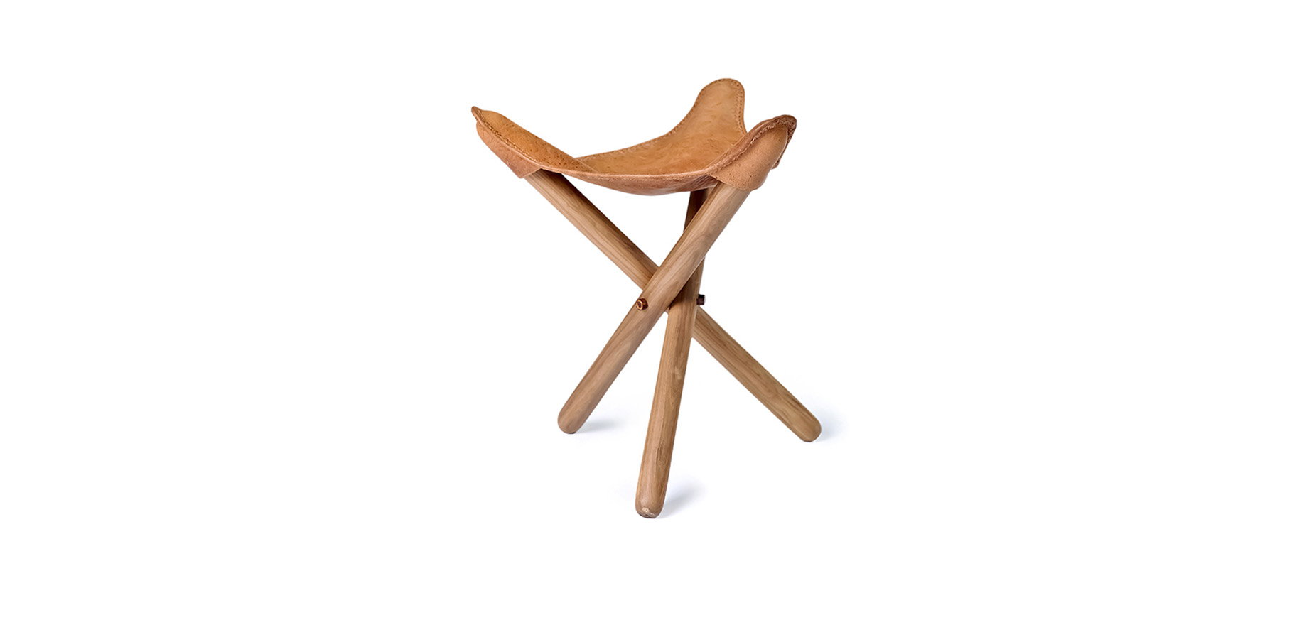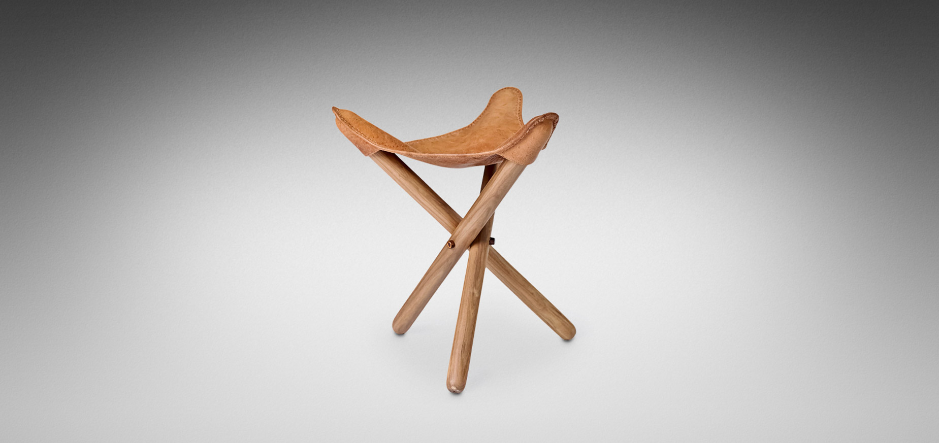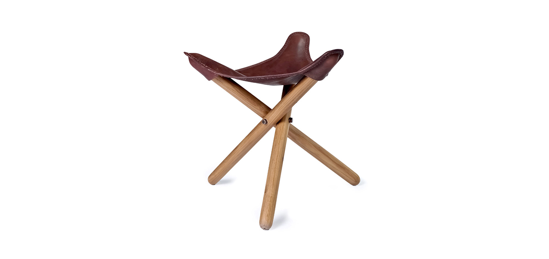 Inspirado nos antigos bancos gaúchos, a peça recebe detalhe de aço corten e assento com acabamento de costura em selaria.