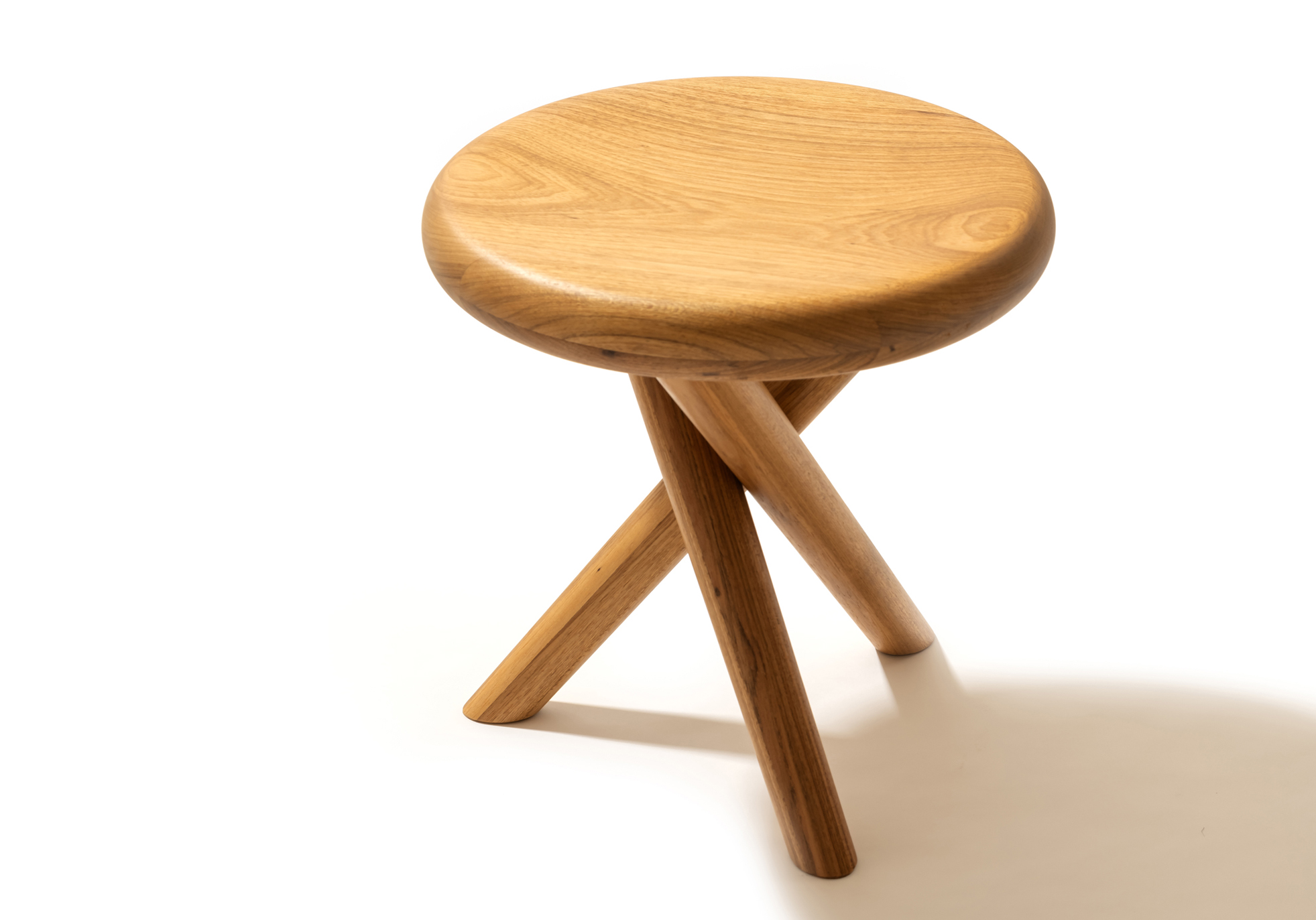 Produto todo em madeira maciça Freijó natural, usinado no torno mecânico com detalhe ergonômico côncavo no seu assento.