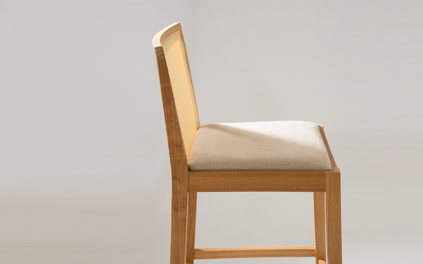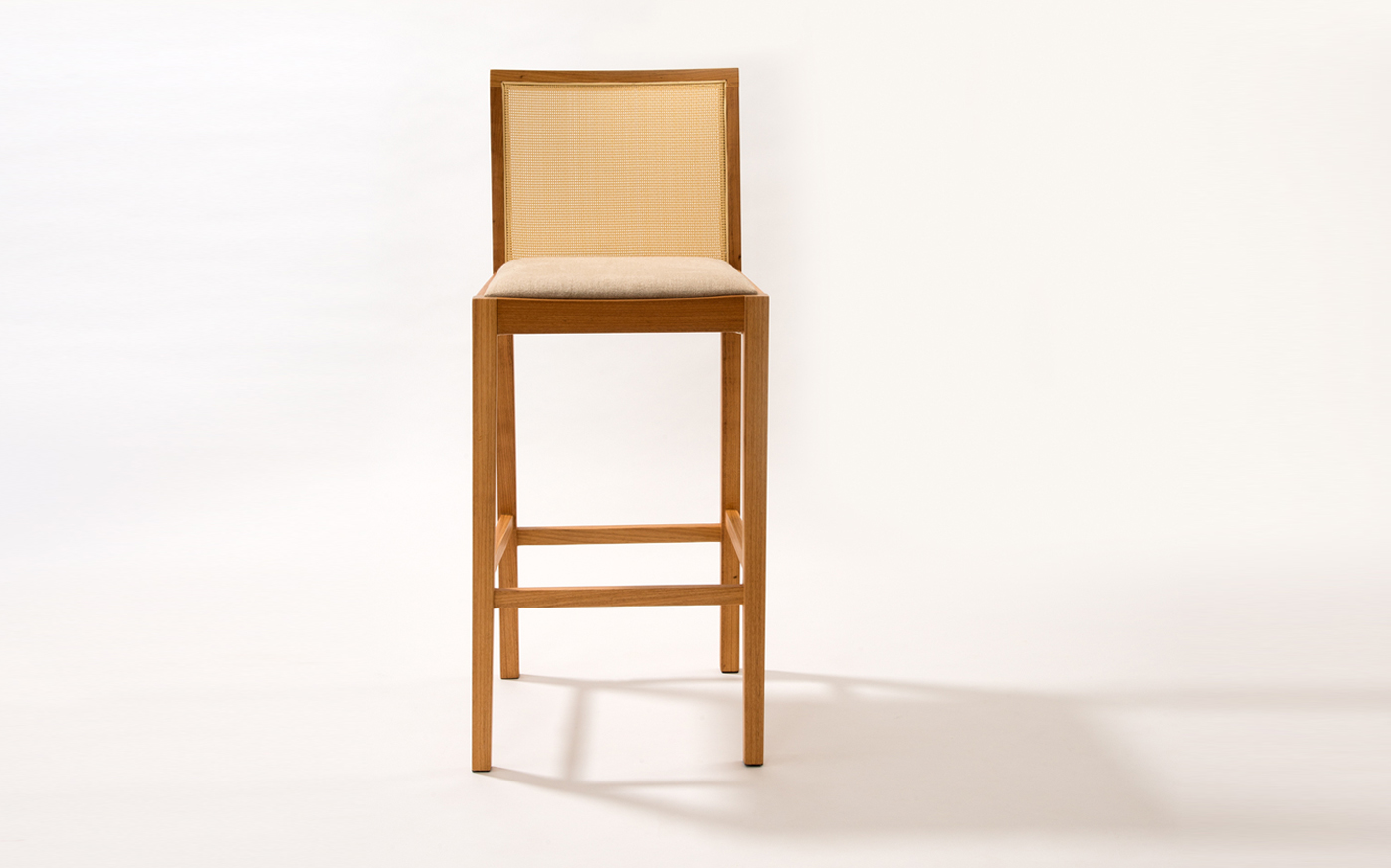 Estrutura em madeira maciça nas opções em freijó, sucupira e ebanizada com encosto em palha ou estofada.