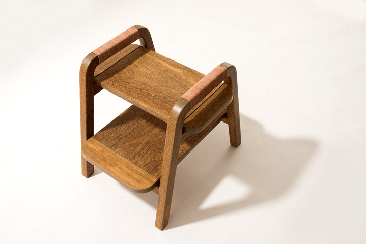 Escada Pedro é produzida toda em madeira maciça com detalhe em couro, ela foge da linguagem padronizada de escada tornando-a delicada e servindo como peça de decoração.