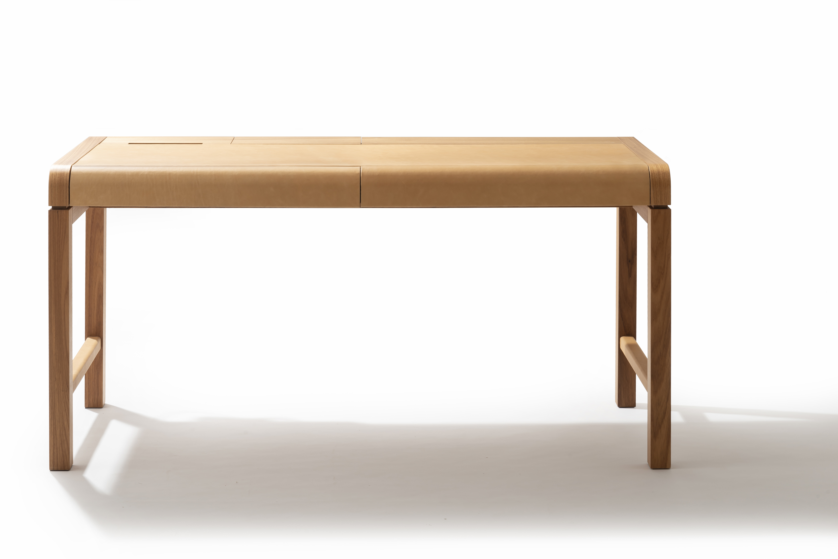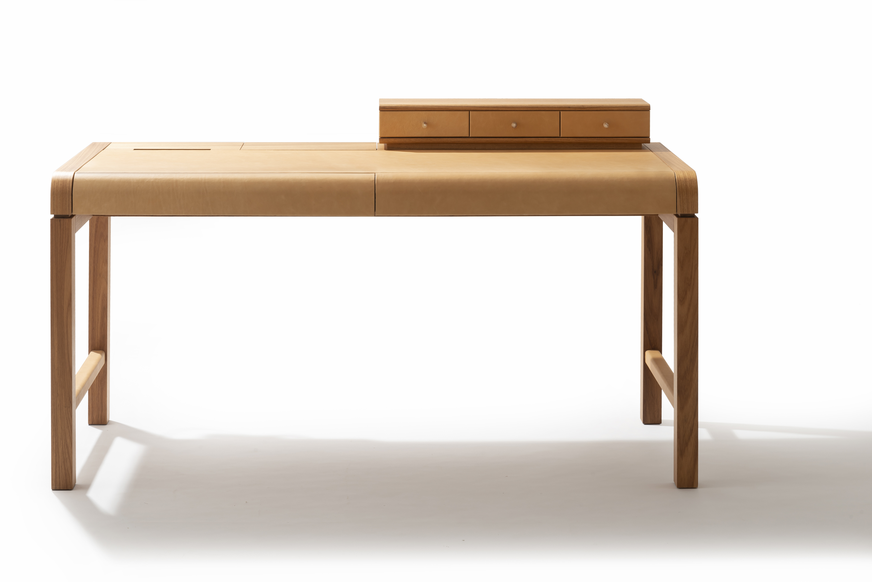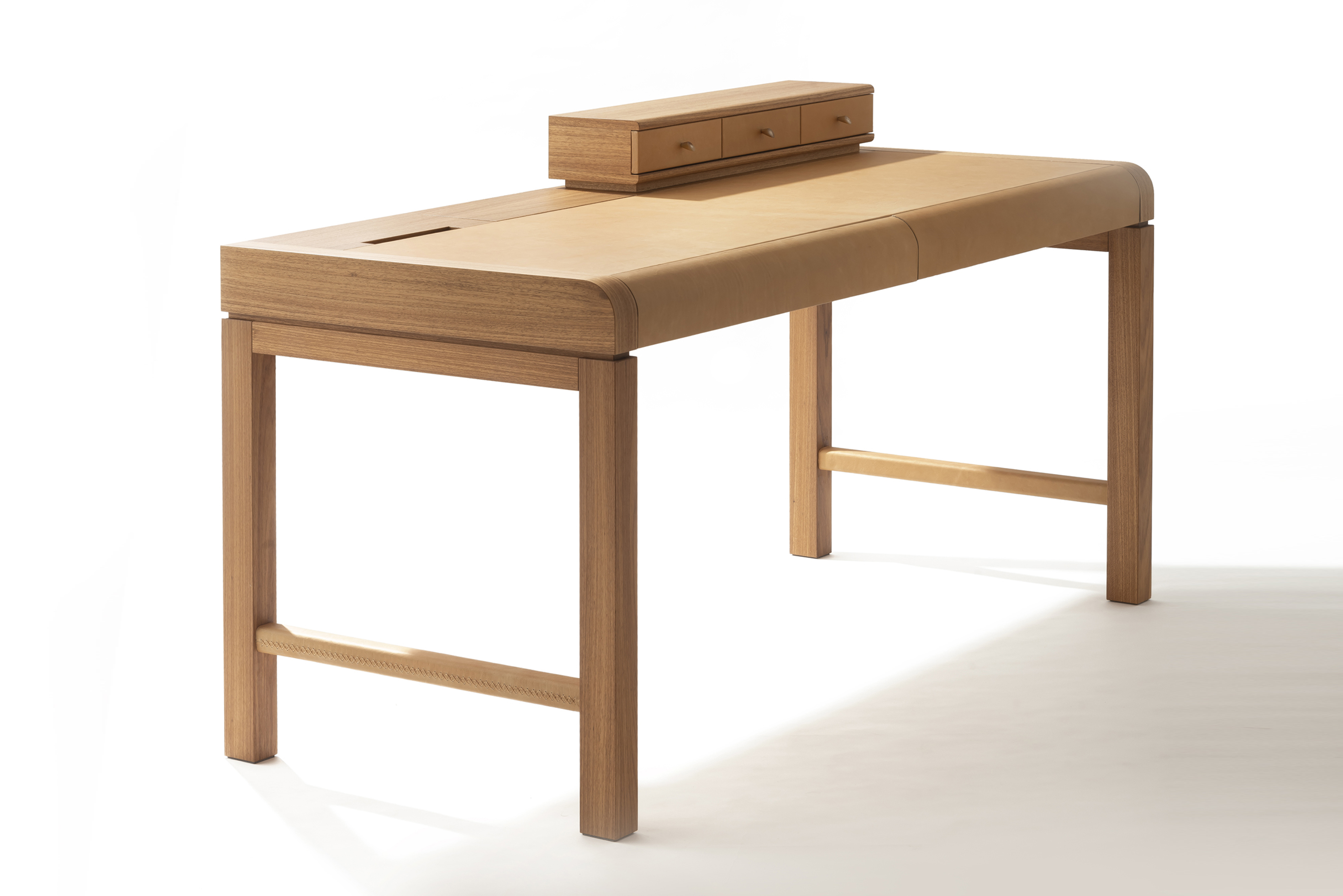 Escrivaninha Donna é produzida em Freijó natural com tampo e gavetas em couro, ela pode ser produzida com ou sem as gavetinhas superiores.