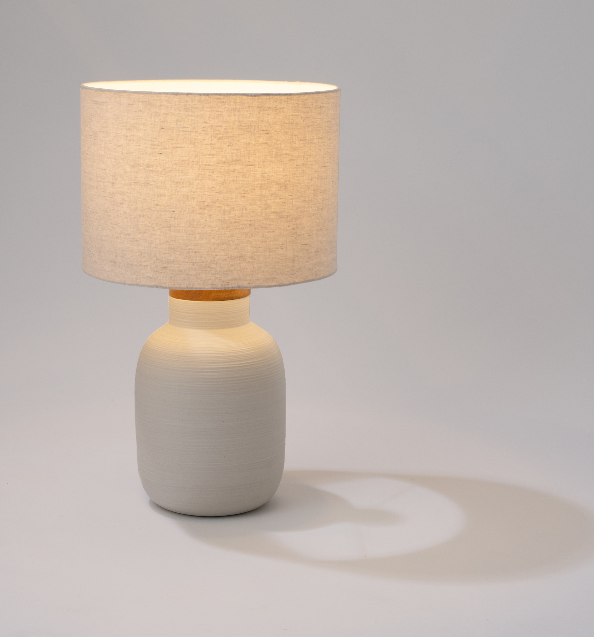 Luminária Tokyo versão em cerâmica com detalhe em madeira.