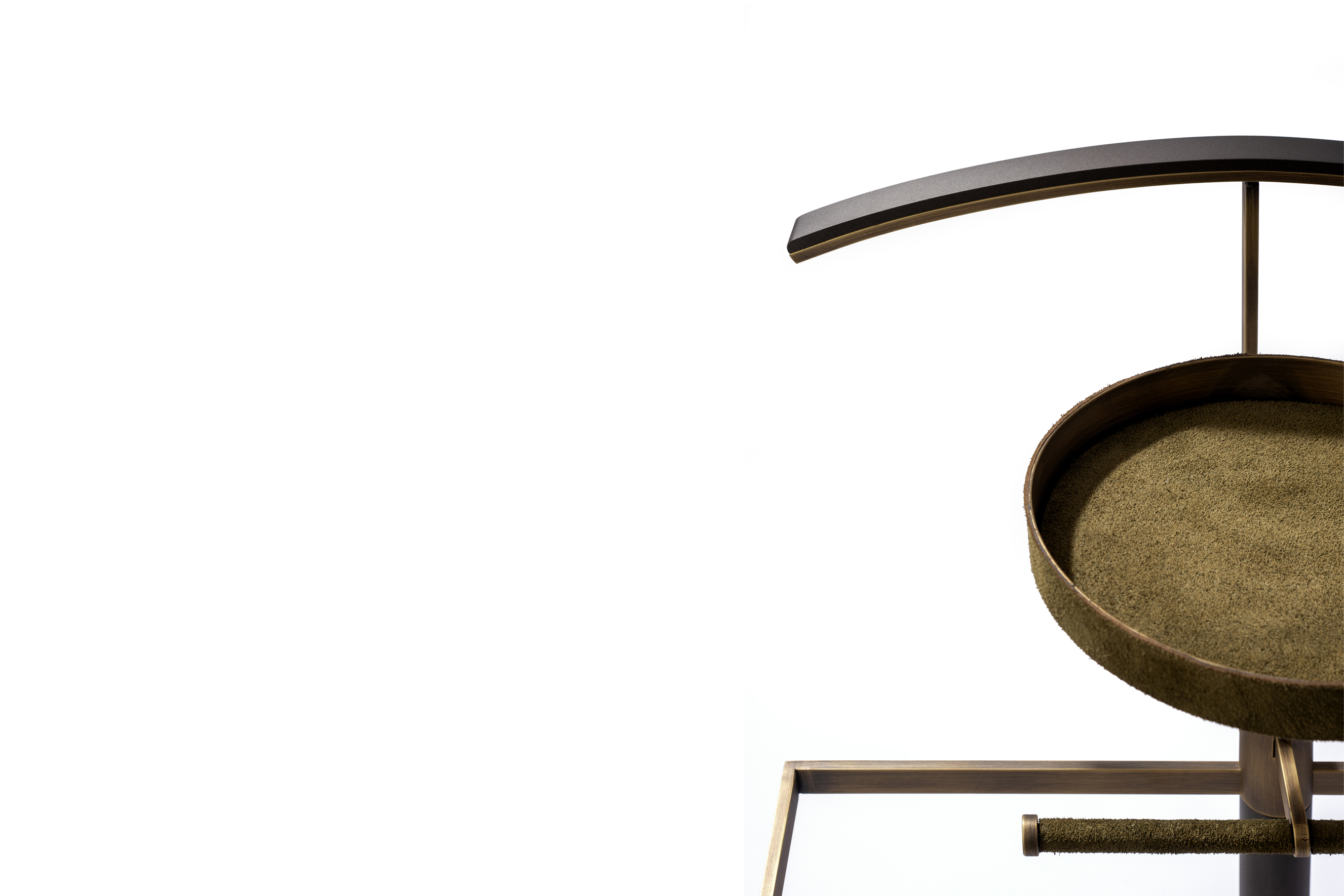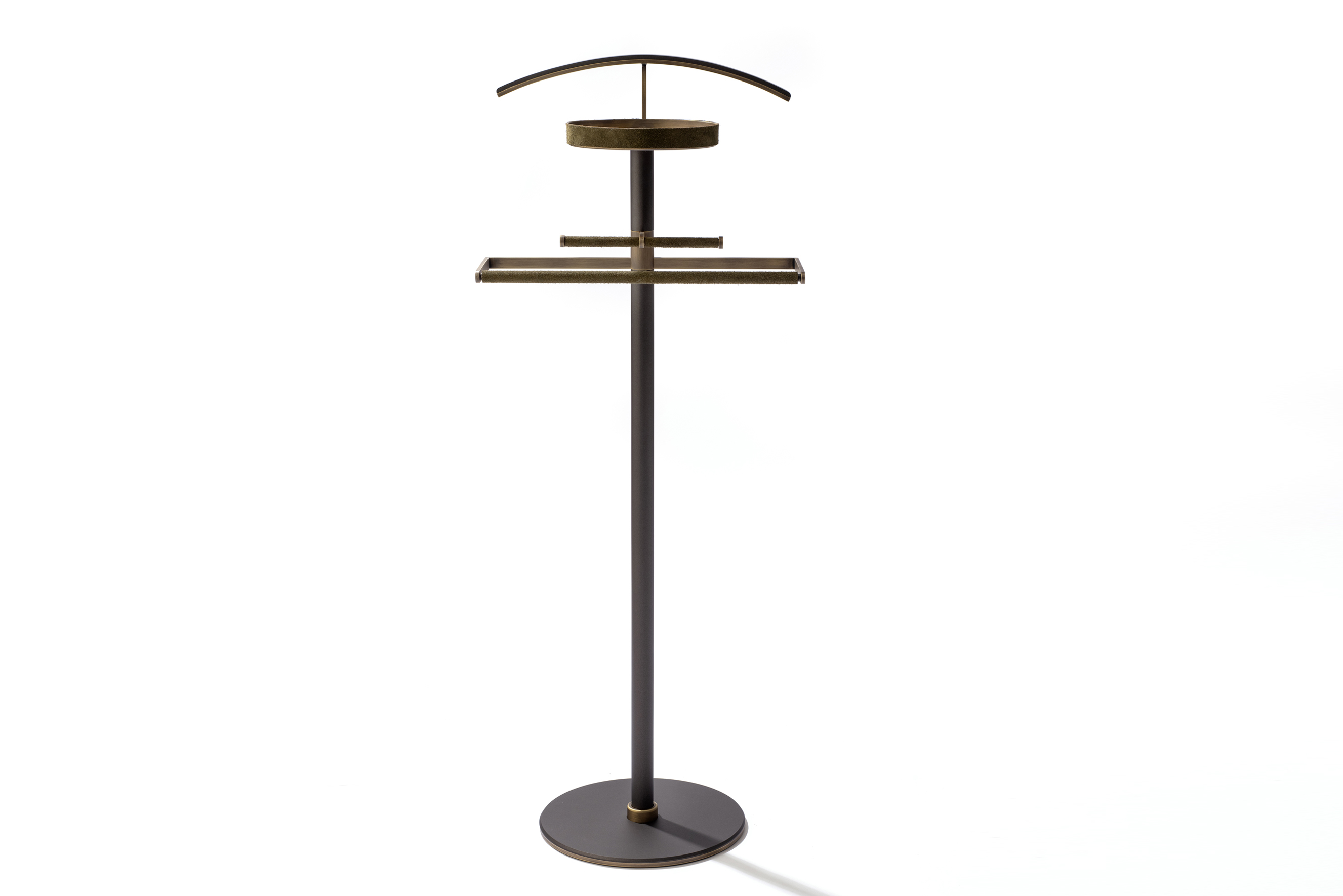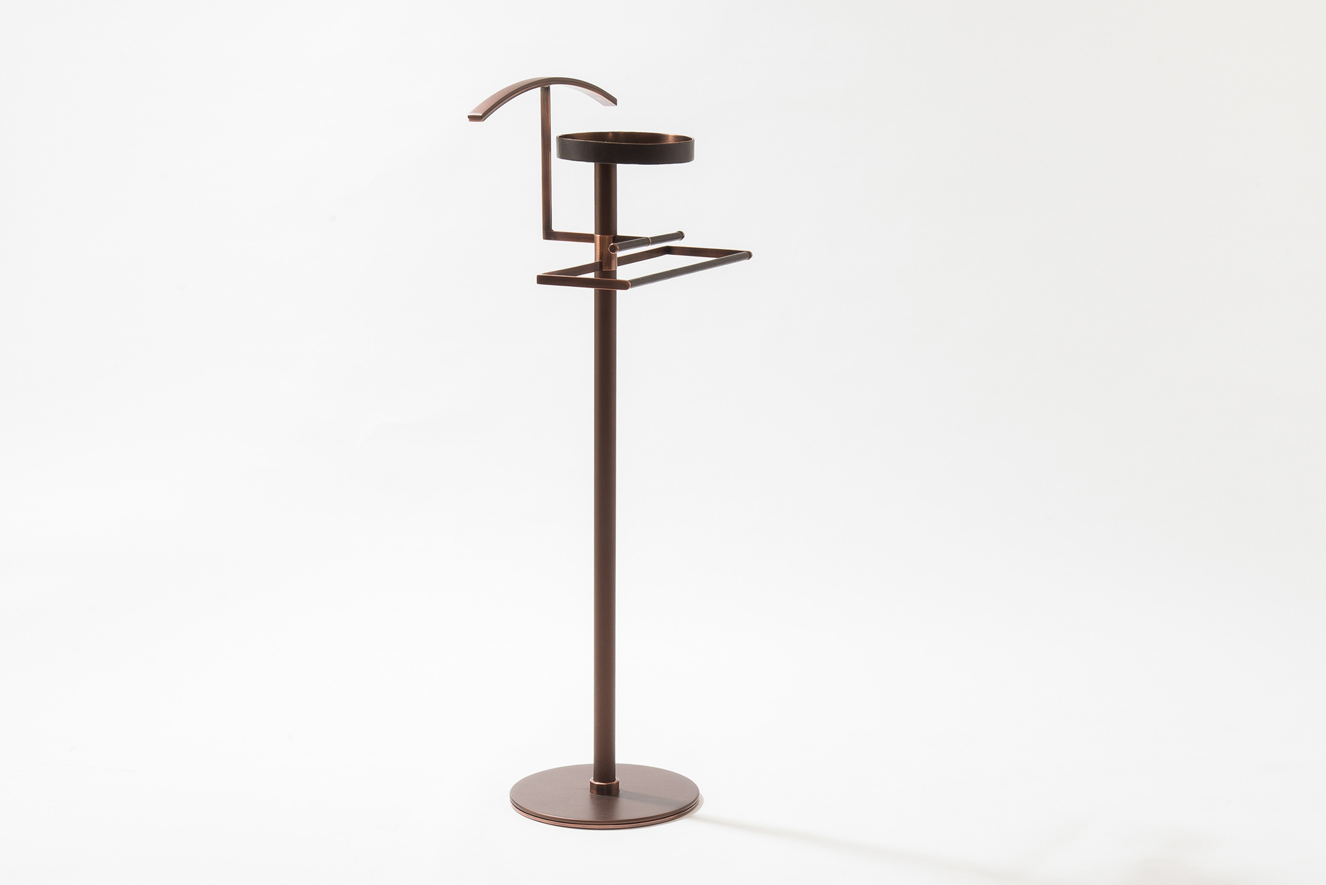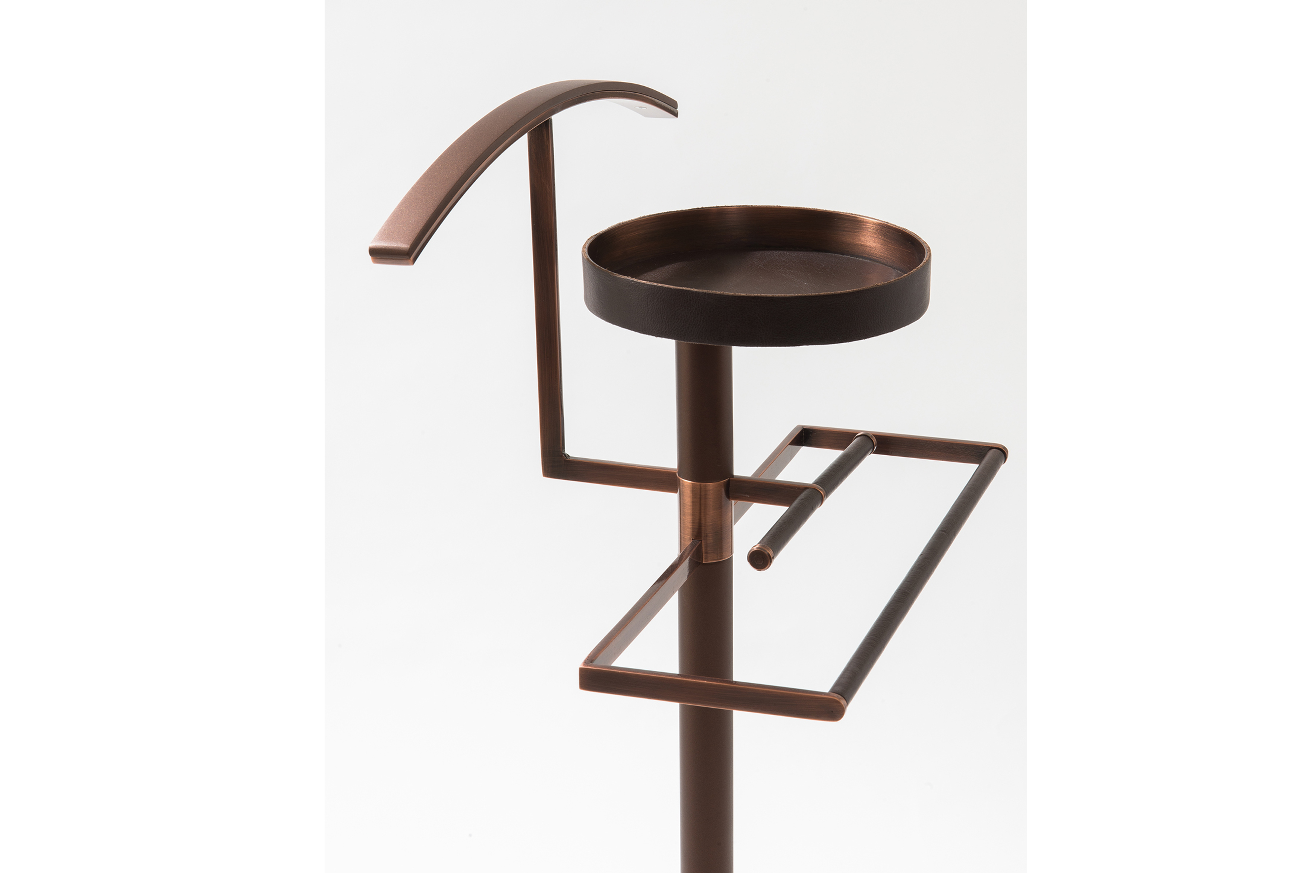 Mancebo Rimini é produzido em metal com detalhes em couro e pintura.