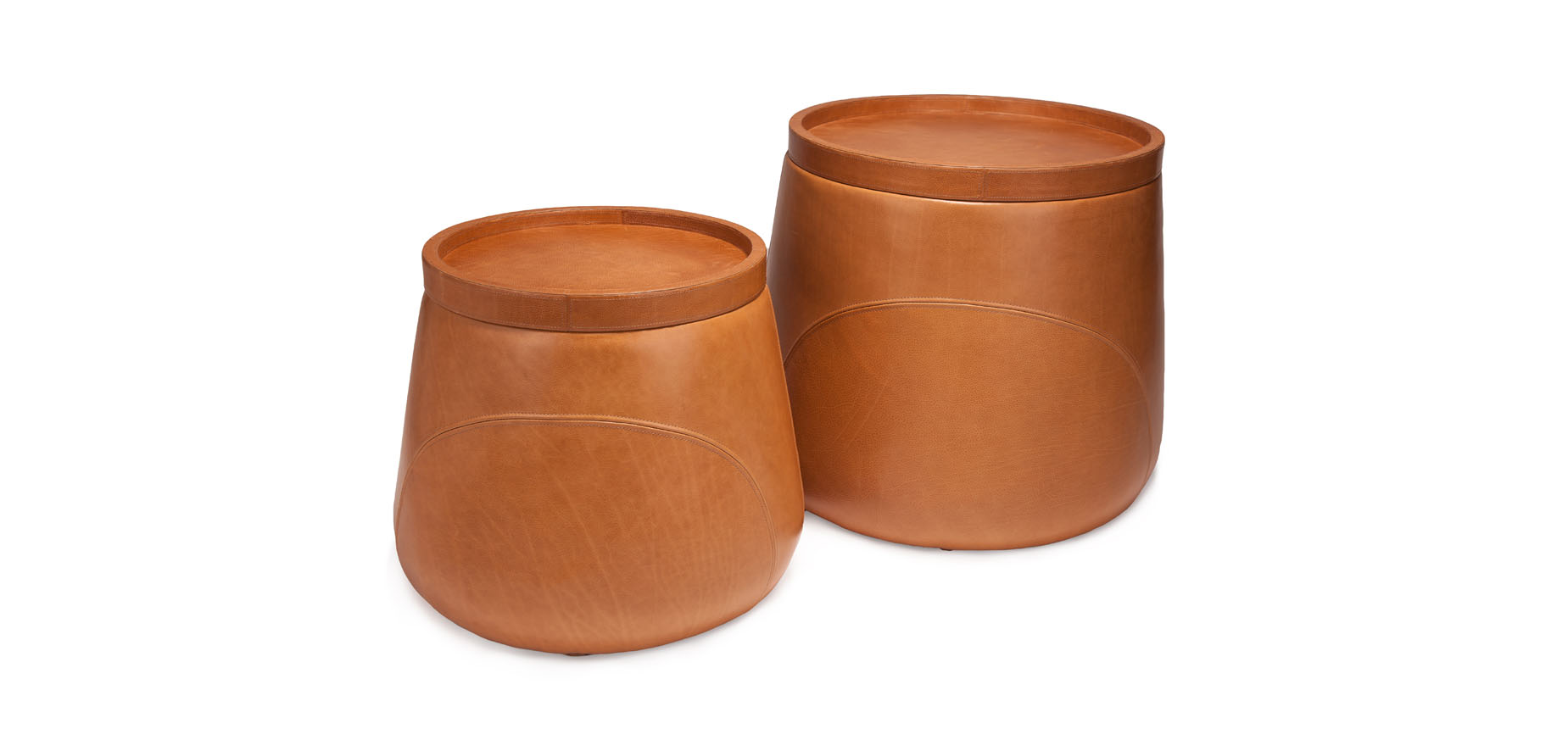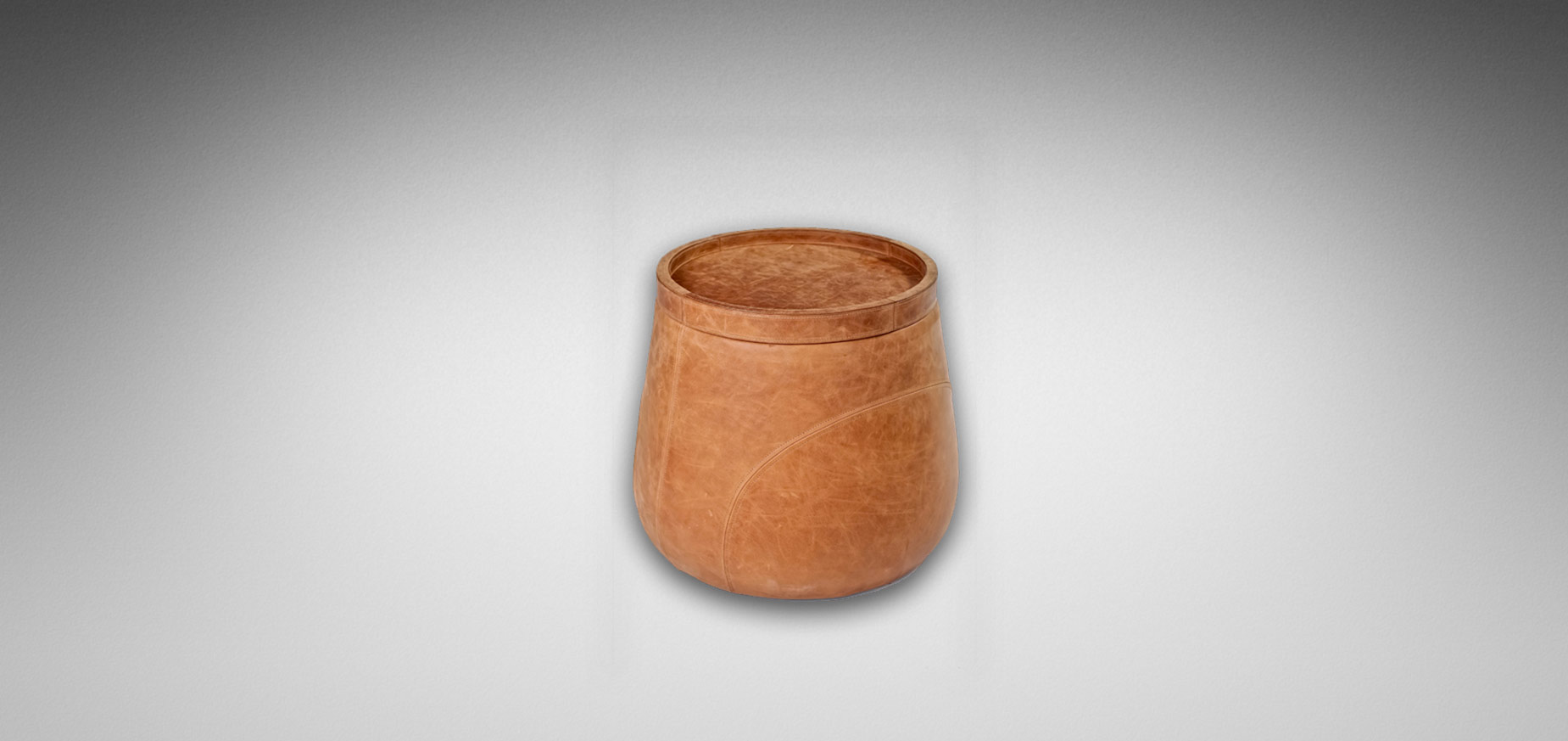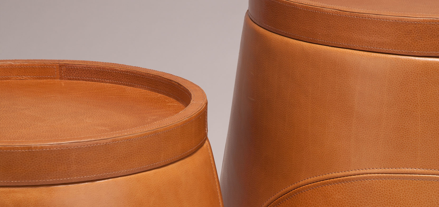 Mesa lateral em couro com costuras especiais remetendo a selaria. Podendo ser confeccionada em outras cores.