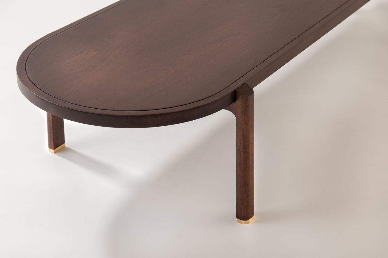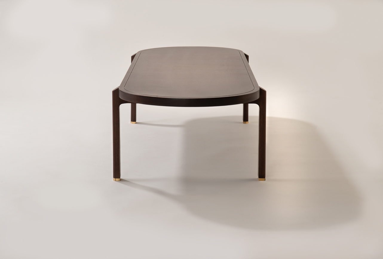 Mesa Luca é produzida com estrutura maciça e detalhe do pé em latão acetinado, seu tampo pode ser folhado ou revestido em couro, sua configuração pode ser redonda, retangular ou quadrada.