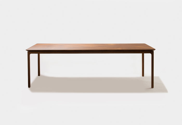 Inspirado nos decks das lanchas italianas, mesa de jantar Riva tem sua estrutura em madeira maciça nas opções em sucupira, sucupira lavada, freijó e freijó lavado.