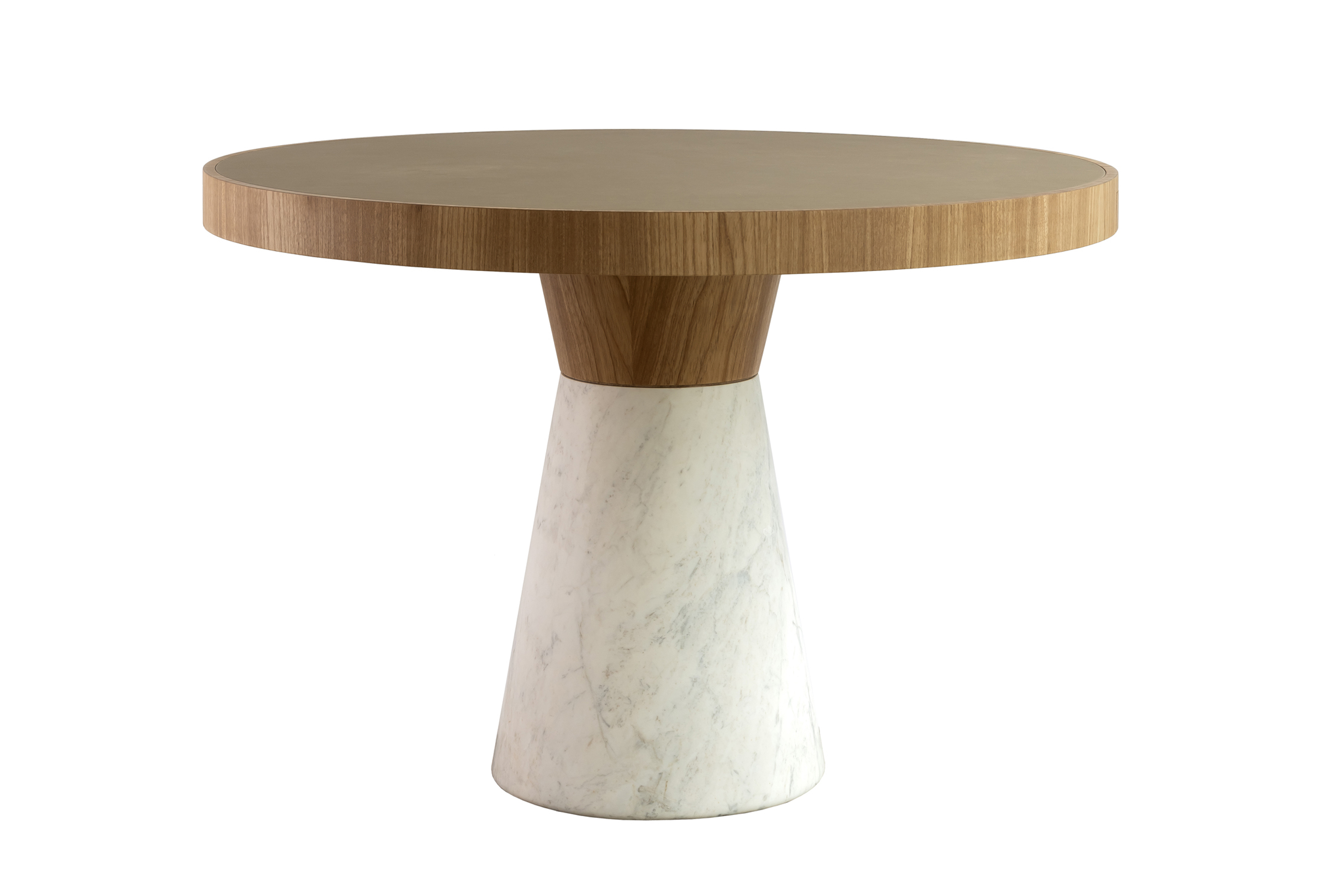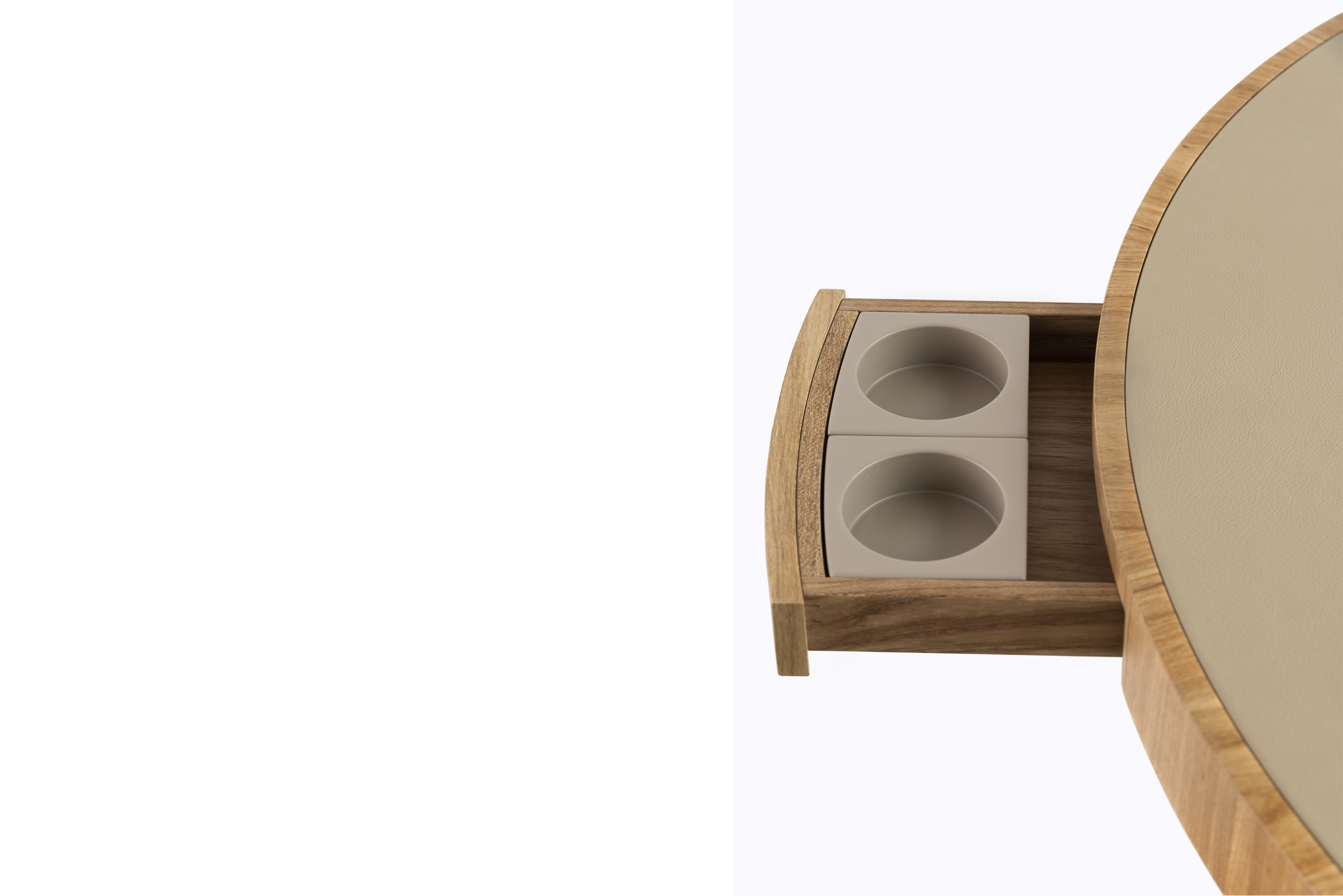 A mesa de jogos Nuno, é produzida em Freijó natural com tampo em couro e base em mármore maciço.