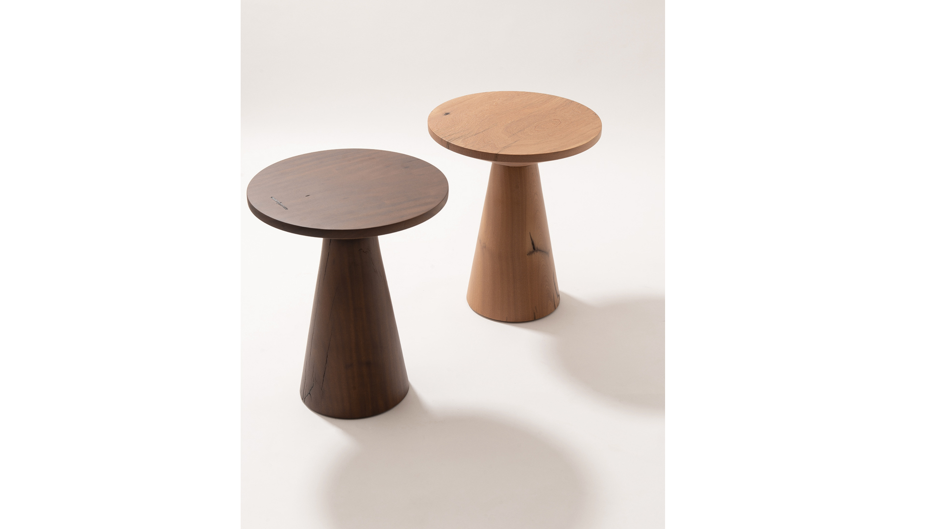 Mesa conceito é produzida toda em madeira maciça torneada.