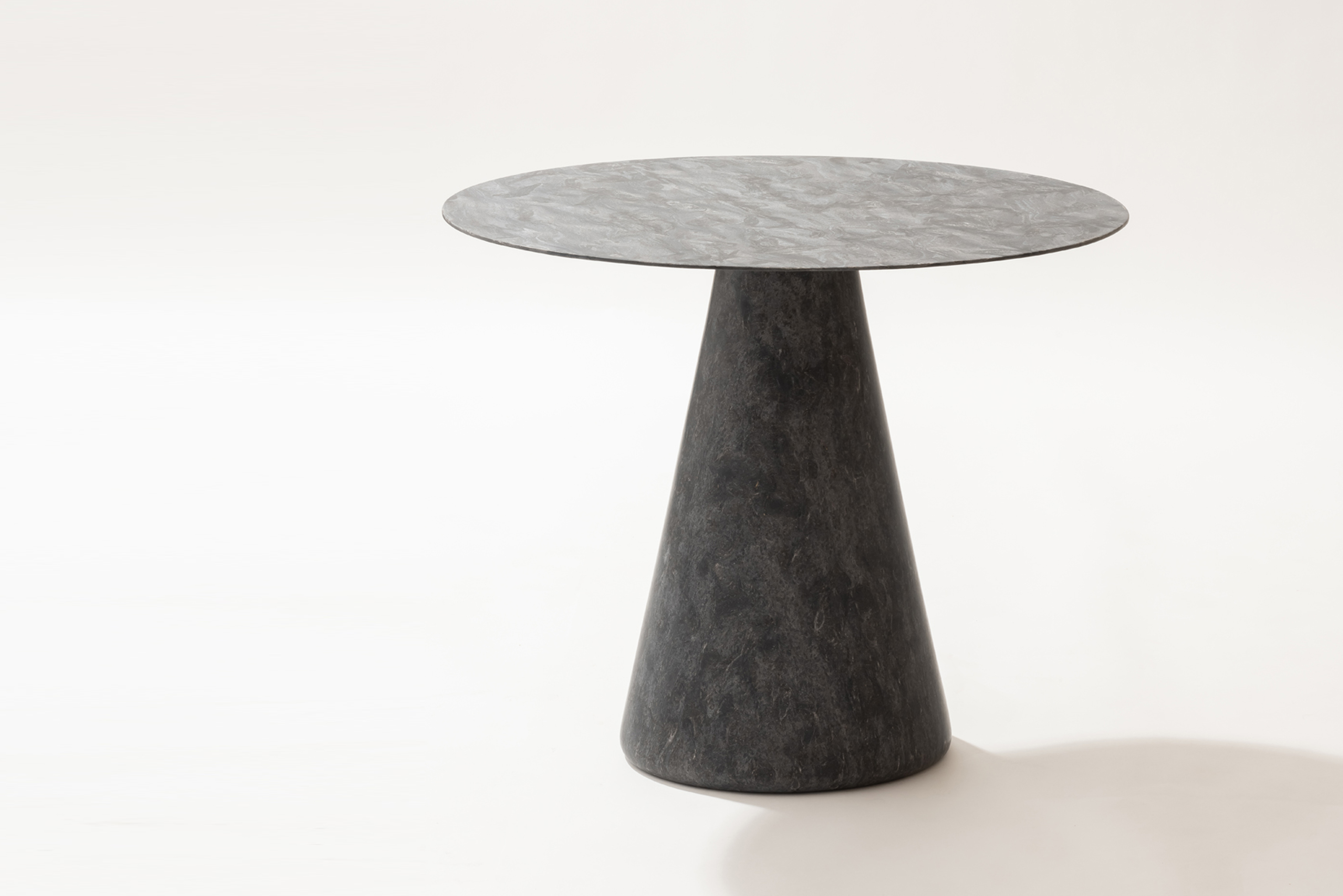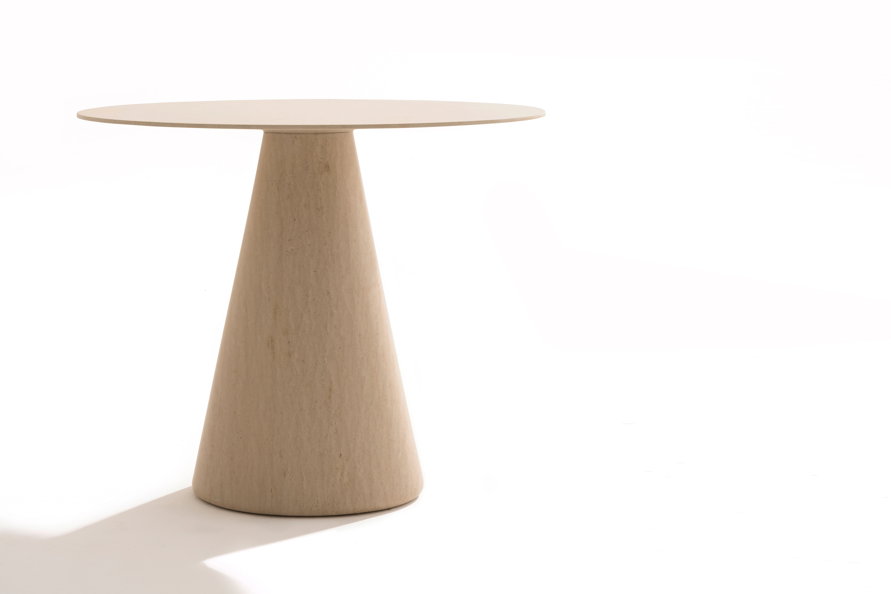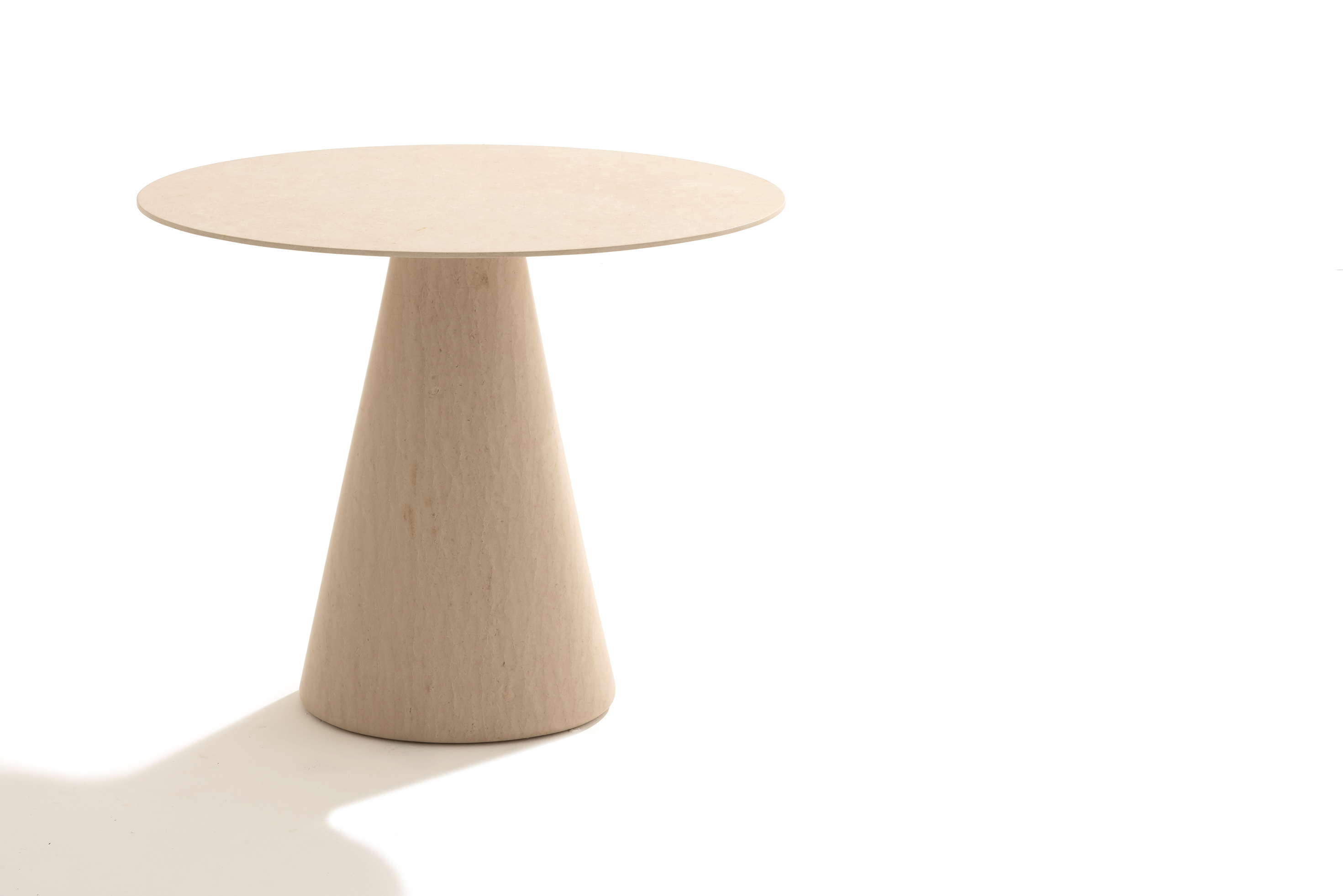 Mesa usinada em bloco maciço de mármore crema paraná.