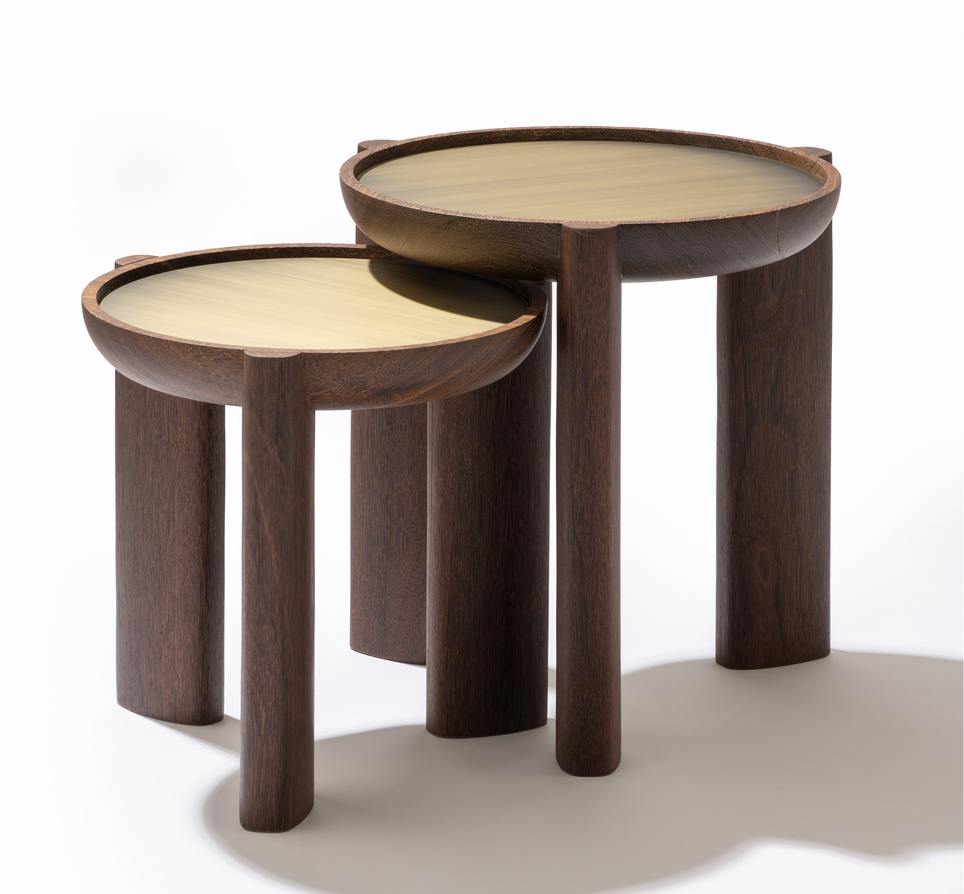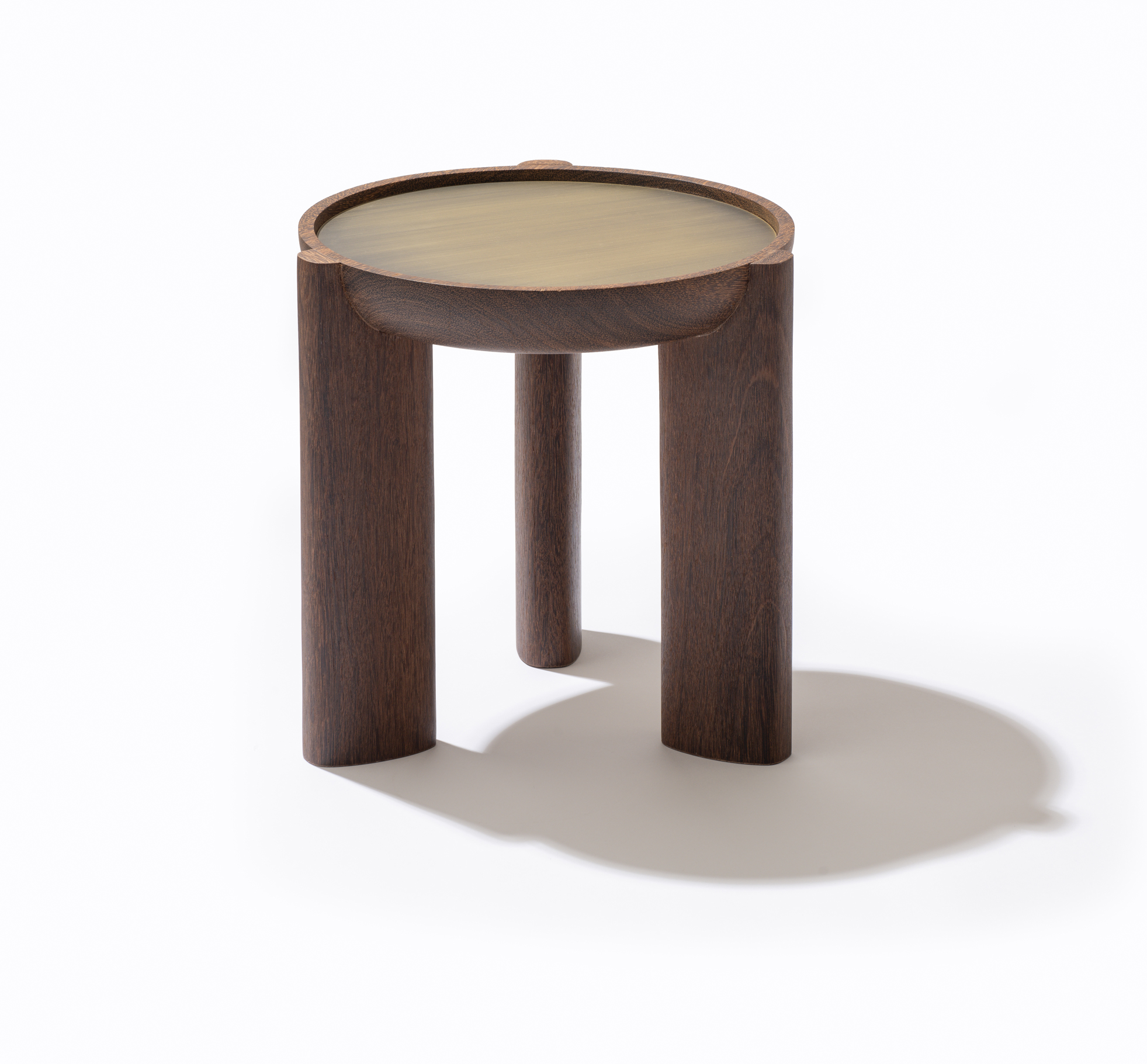 Mesa lateral produzida toda em madeira maciça, com detalhe em latão envelhecido no seu tampo.