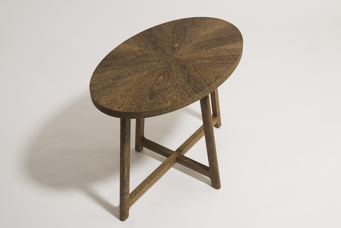 Delicada mesa lateral, construída de forma artesanal, com pés em madeira maciça e tampo com um lindo desenho de folhas. Opções no formato oval, redondo e quadrado.