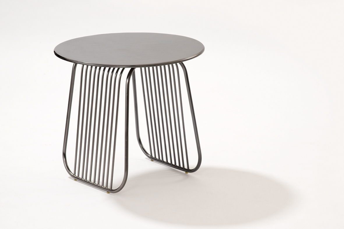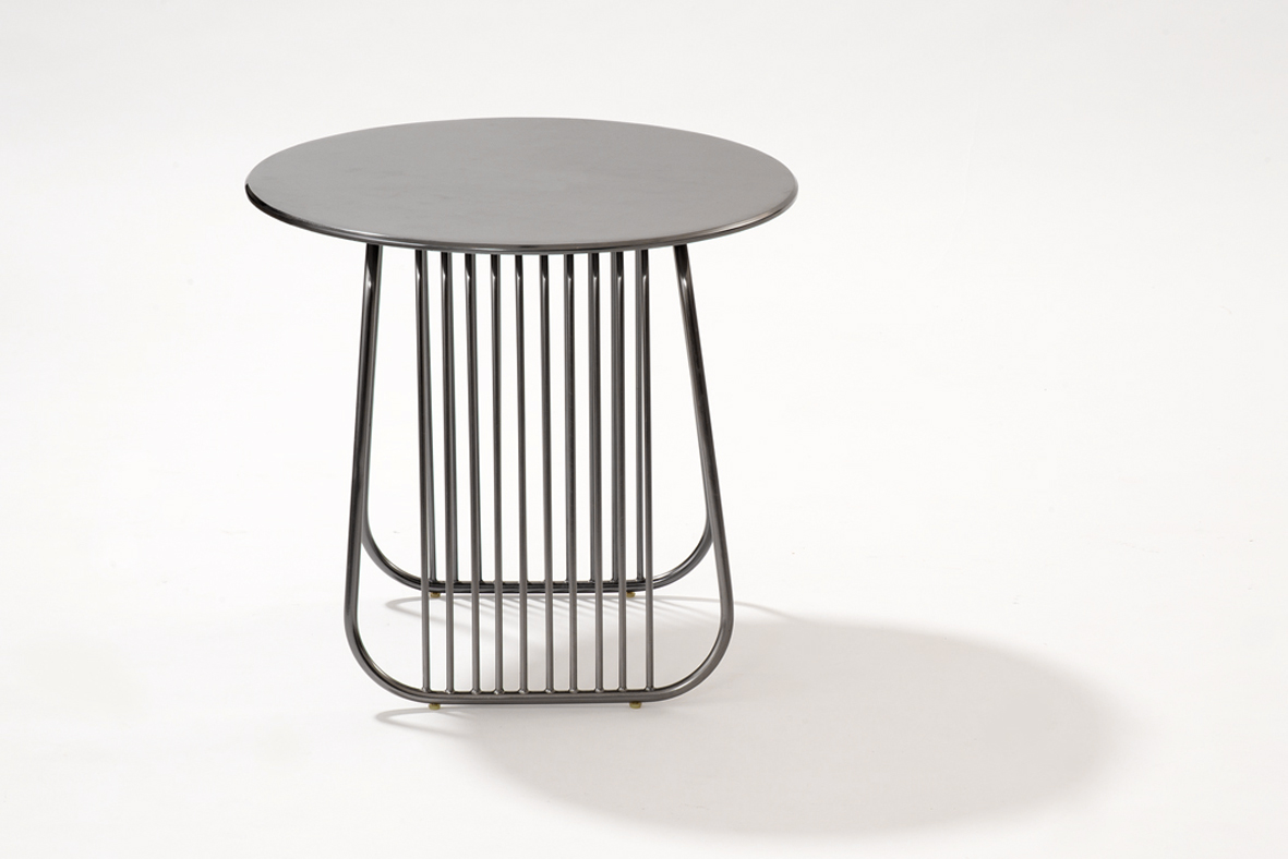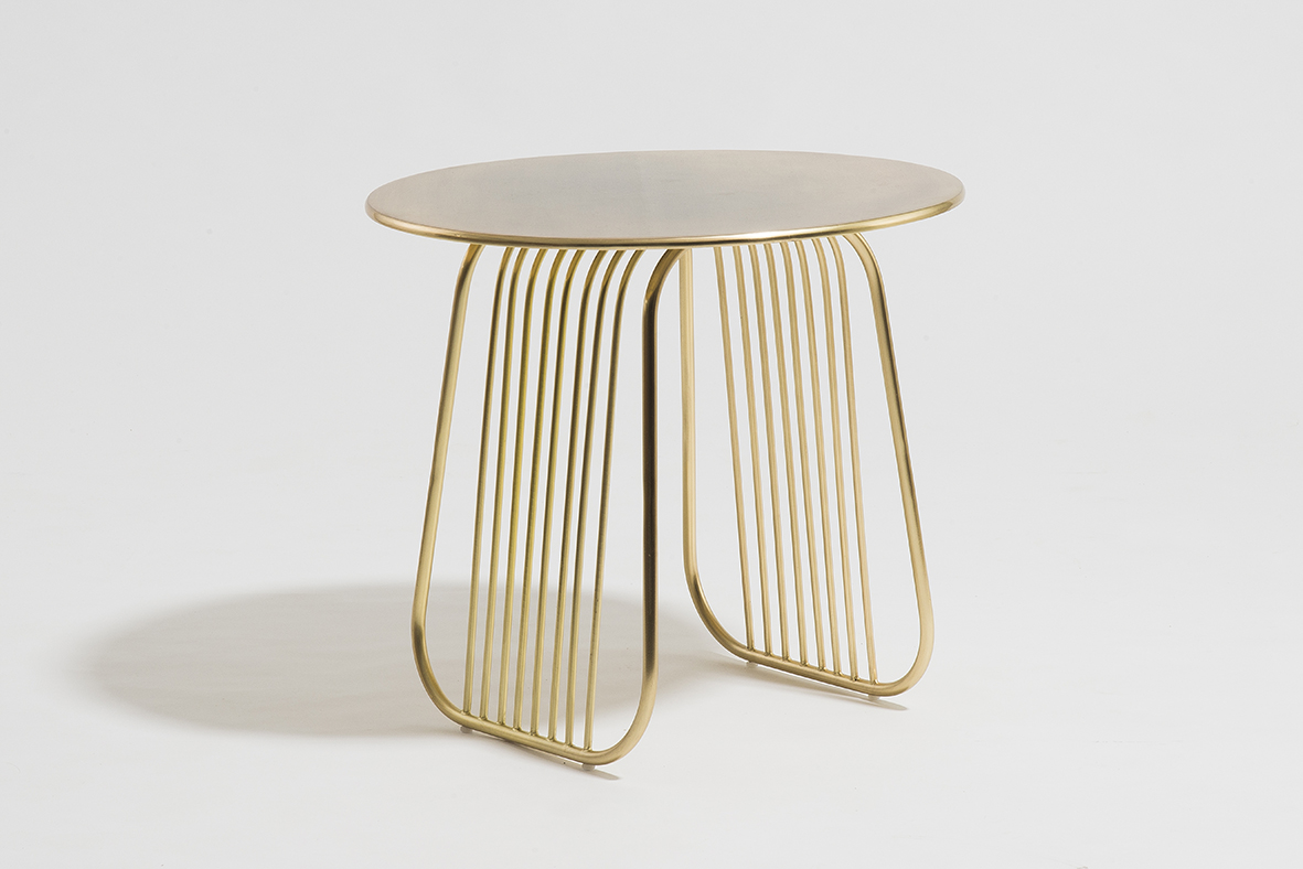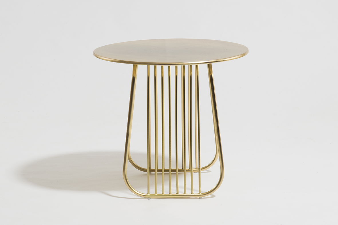 Mesa Lipe tem como inspirações o movimento Art Deco, trabalhando com formas tubulares a mesa é produzida em aço carbono com opções de acabamento em cobre oxidado, latão acetinado e onix.