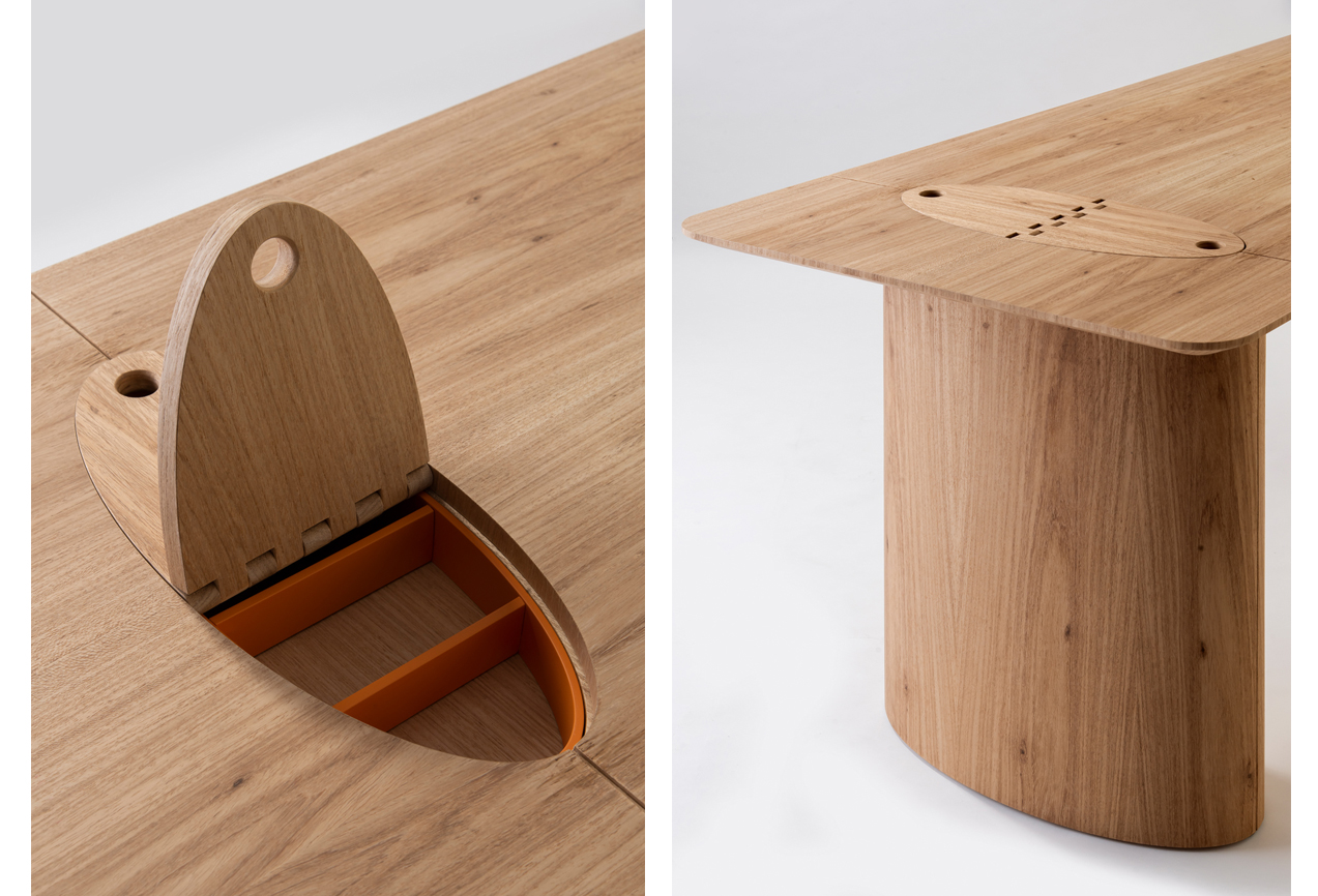 Mesa Tempo pode ser usada como escrivaninha ou como aparador.