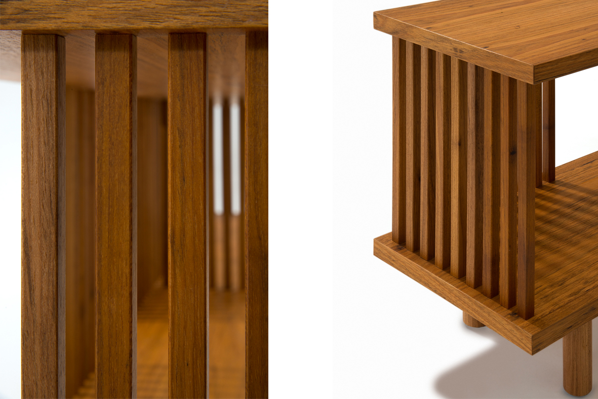 O móvel tem sua estrutura vertical composta de peças maciças, confeccionados e encaixados individualmente, seus pés podem ser produzidos em madeira torneada ou apenas uma base discreta e recuada, seu tampo pode ser apenas em madeira ou pedra.