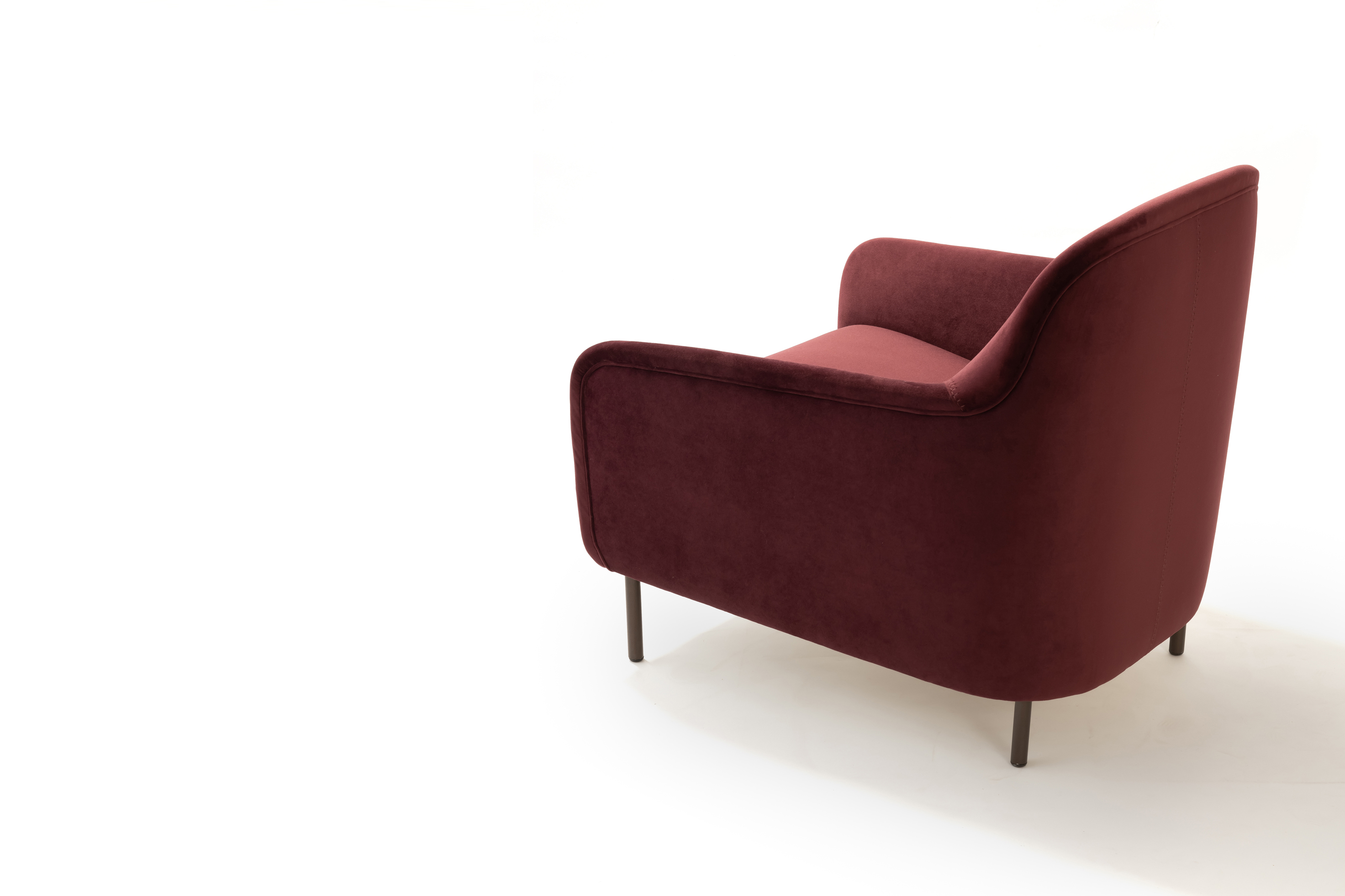 Poltrona mini Donna é uma versão menor da nossa já existente poltrona Donna, seus pés são confeccionados em metal com pintura eletrostática.