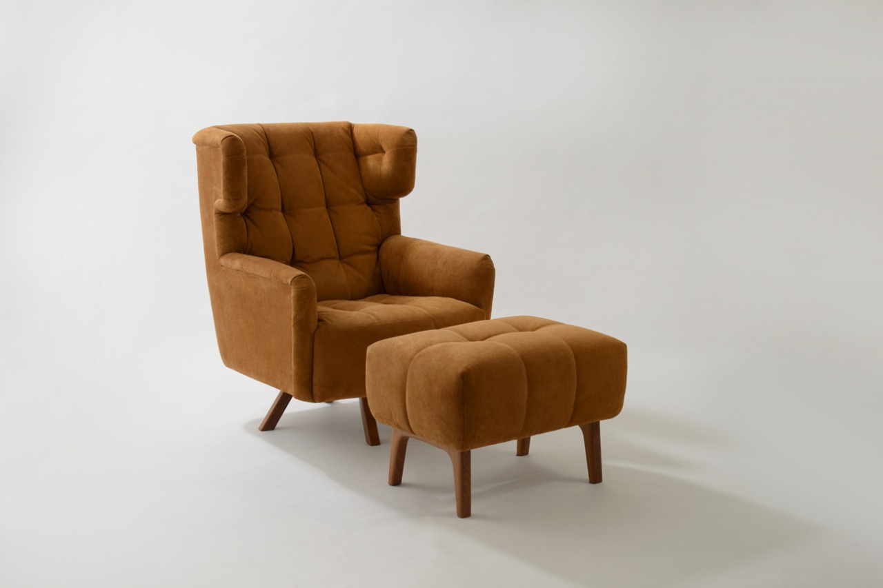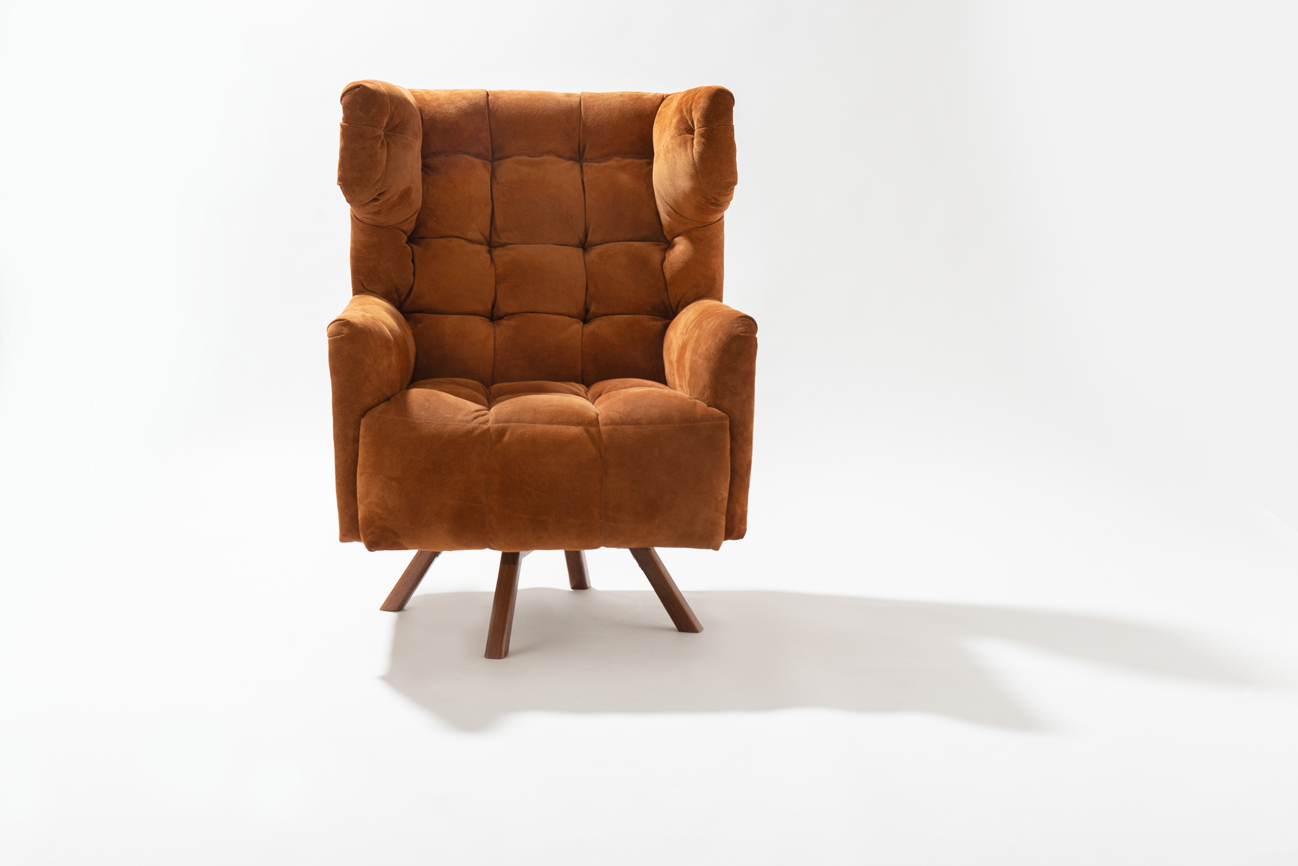 Poltrona Lolita giratória uma aconchegante poltrona com espaldar alto próprio para leitura.