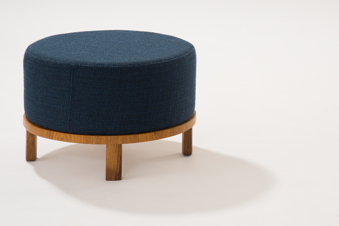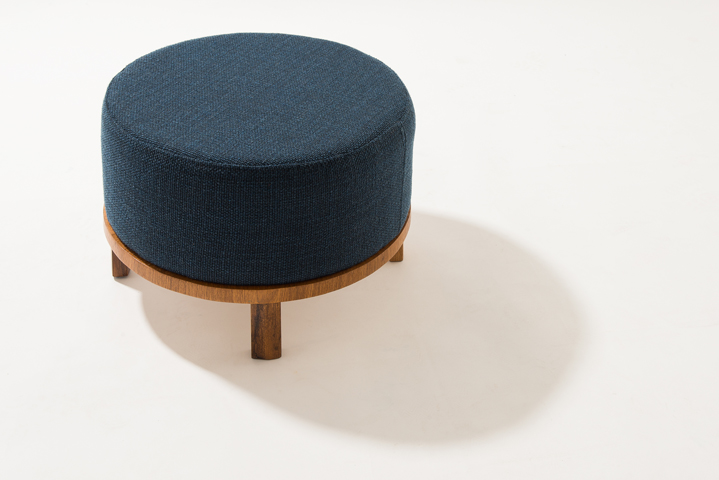 Puff Bolinha estofado com opções de pés em madeira ou revestido em camurça.