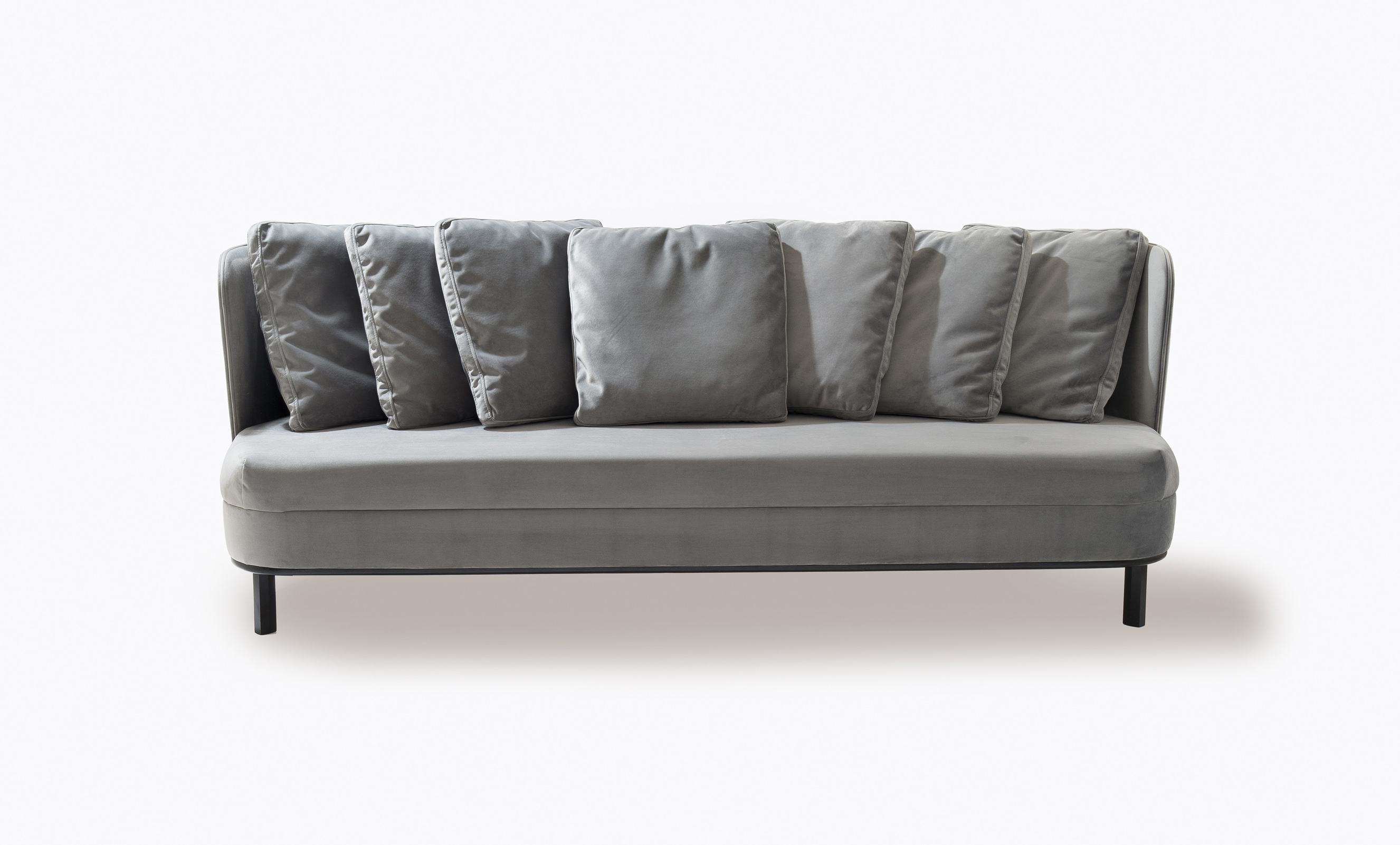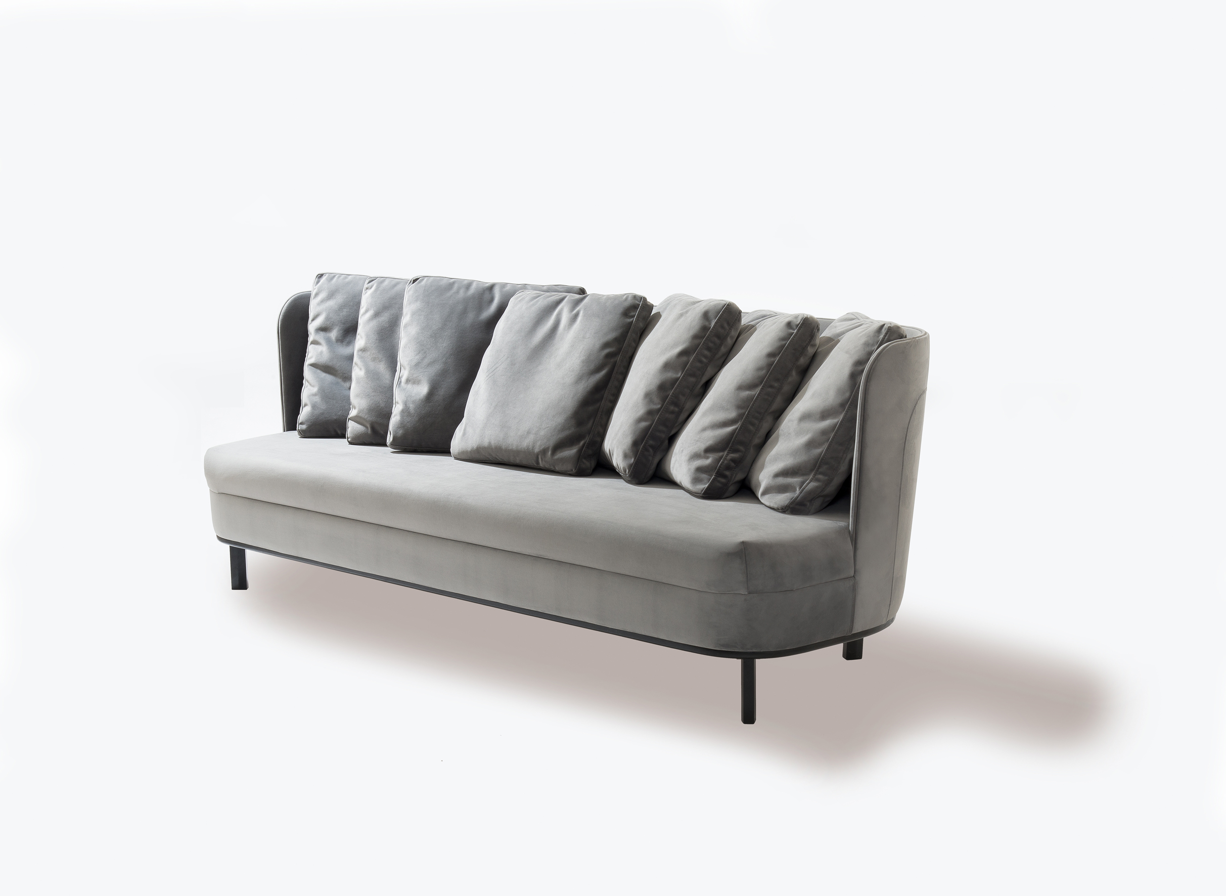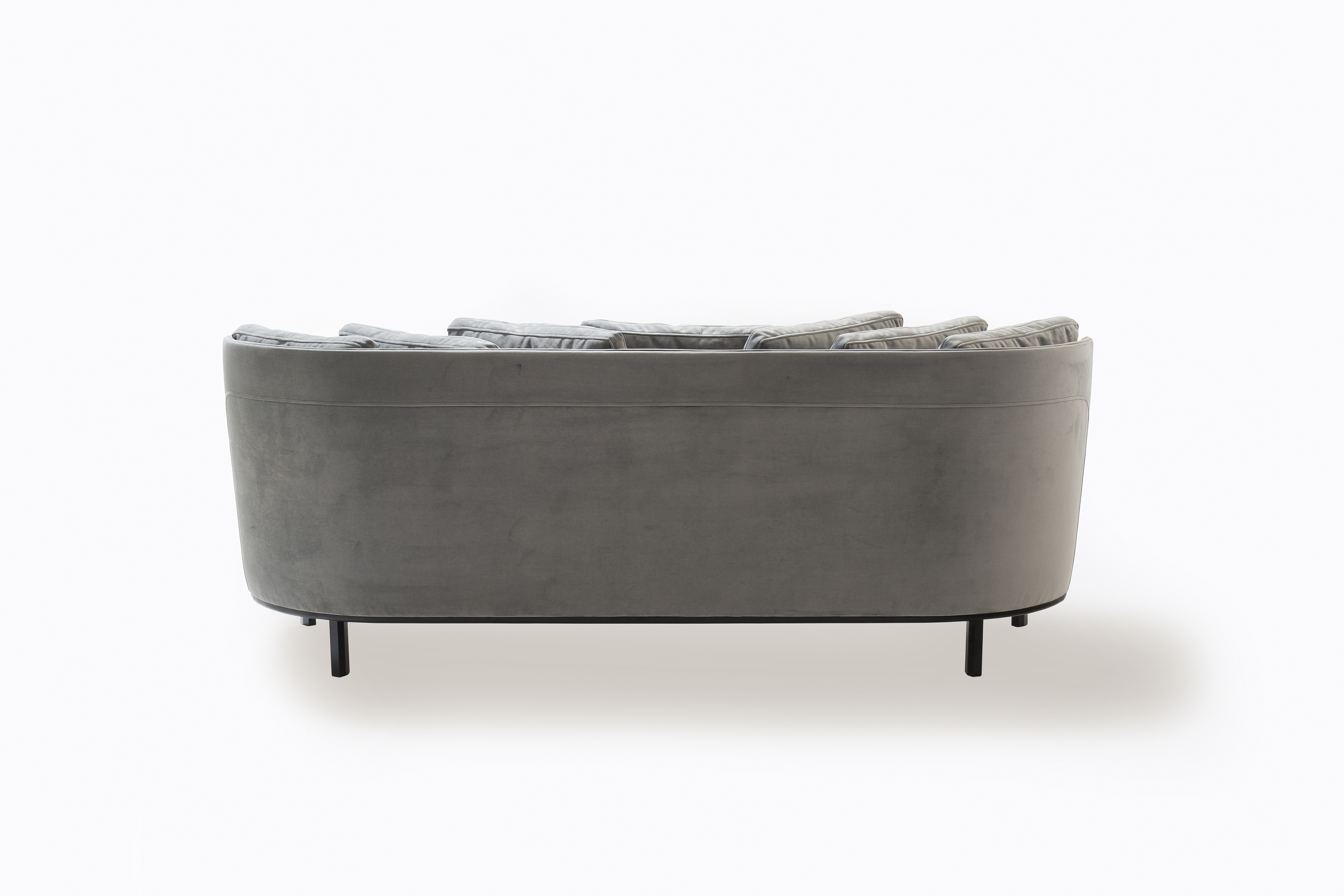 Sofá Rimini resgata referencias clássicas e traz para contemporaneidade, levando em destaque sua fina estrutura de encosto. Possui assento com molas ensacadas e seus pés podem ser em madeira Sucupira ou Freijó.