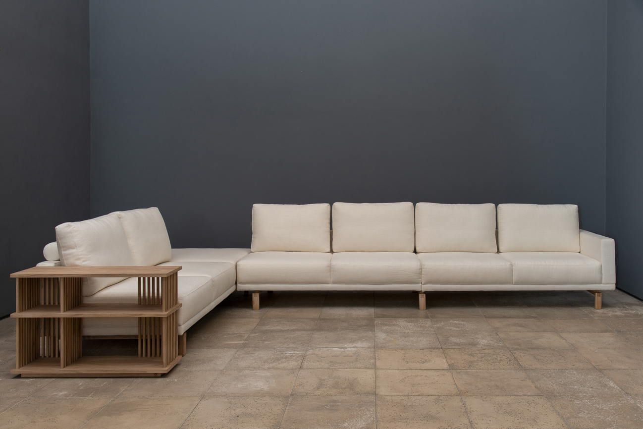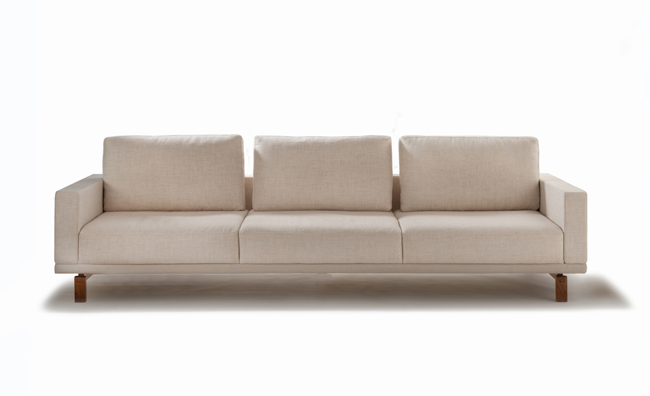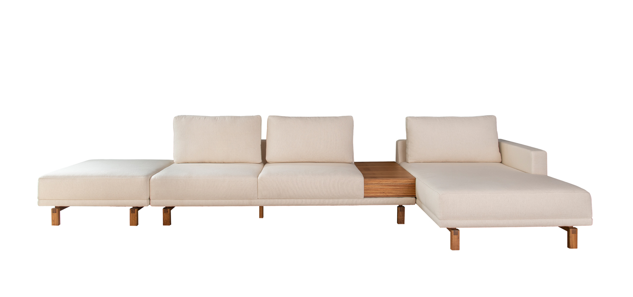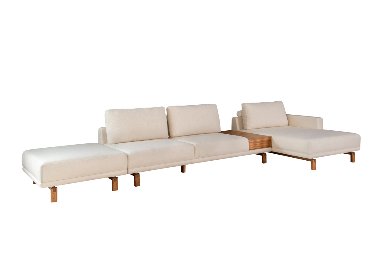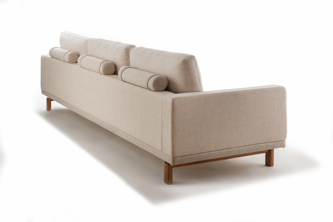 Sofá Tetê é uma peça muito confortável e possui pés em madeira maciça.